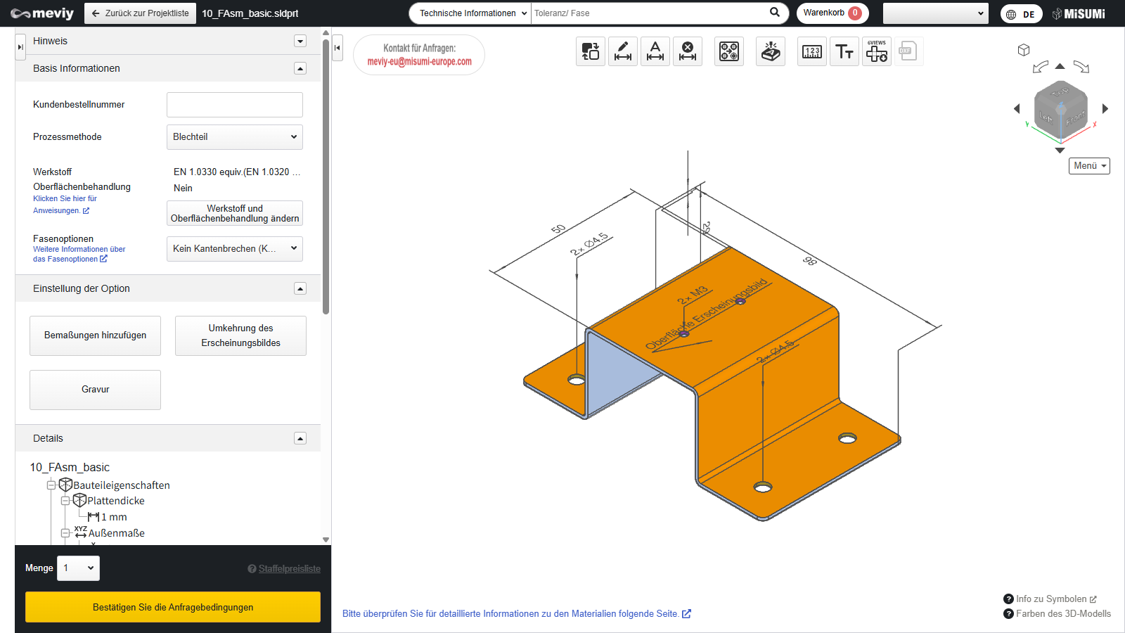 - Mit dem 3D-Viewer können Sie Modelle aus 3D-Daten, die in meviy hochgeladen wurden, ähnlich wie mit CAD-Software bearbeiten.