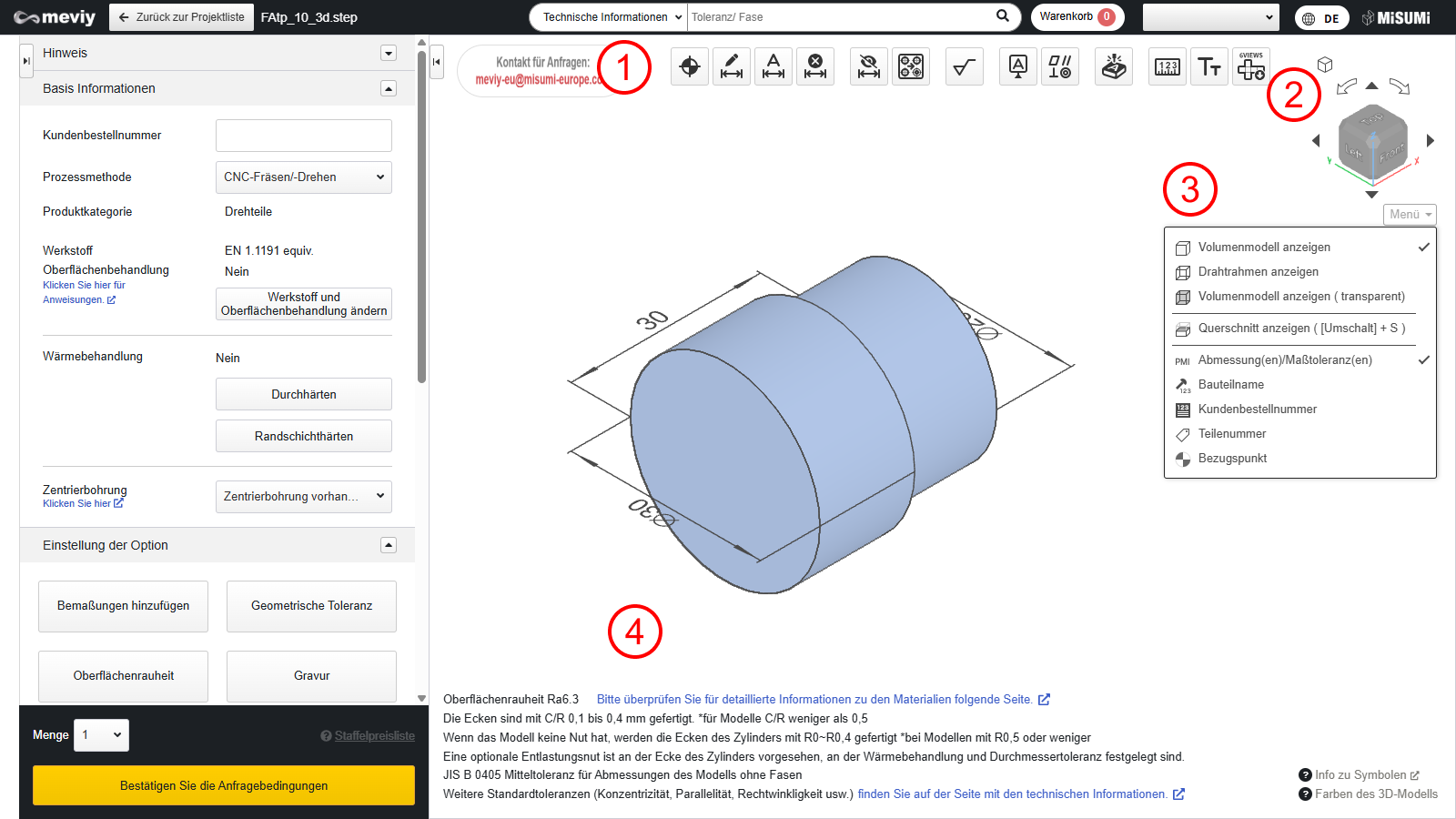 - Hier können Sie die Darstellungsmethode des 3D-Modells ändern und zwischen der Anzeige oder dem Ausblenden von Textinformationen im 3D-Viewer umschalten.