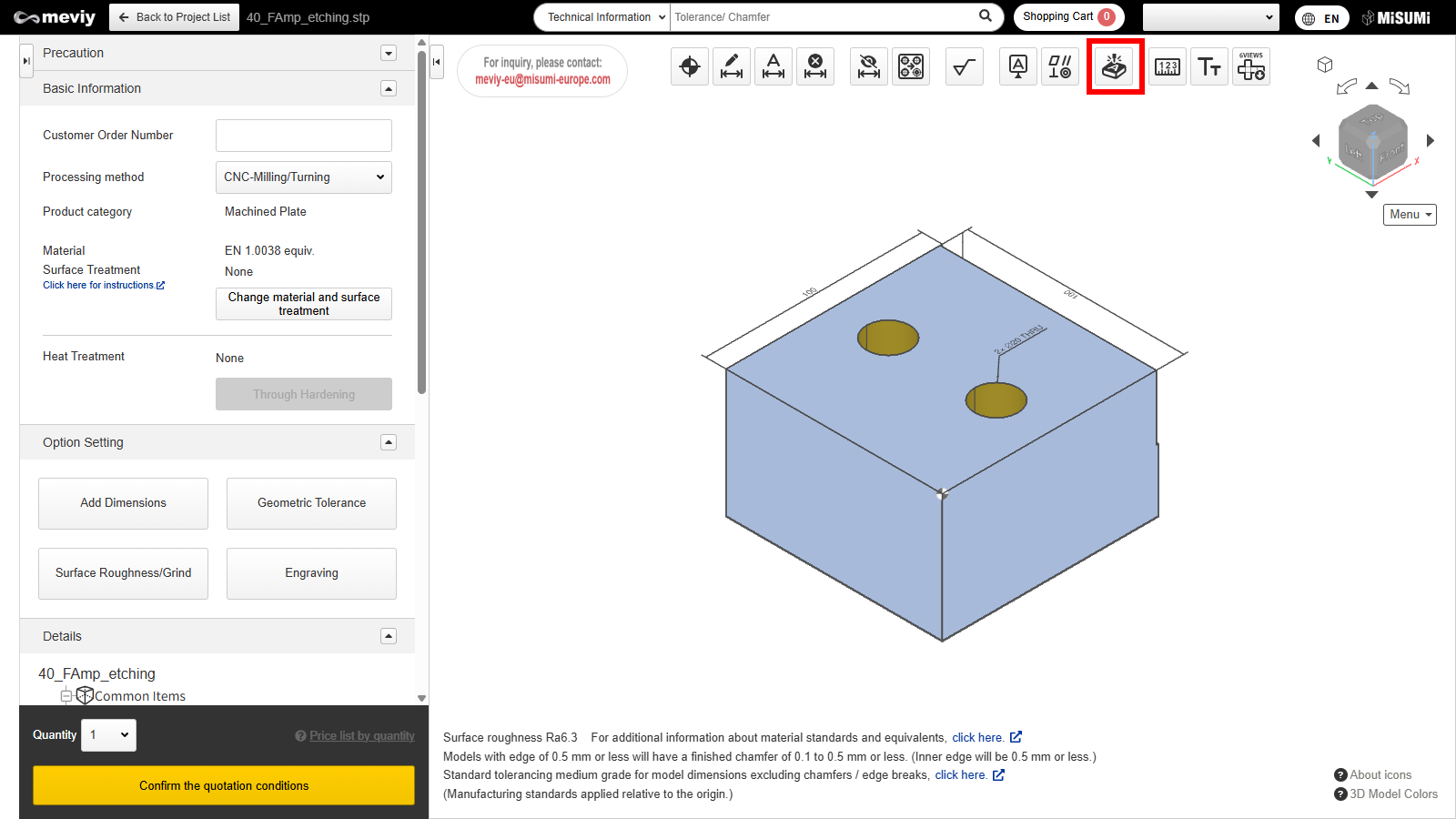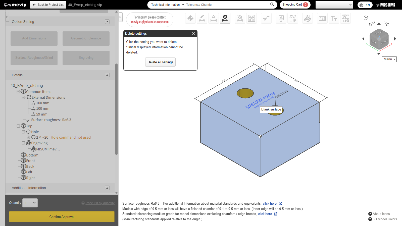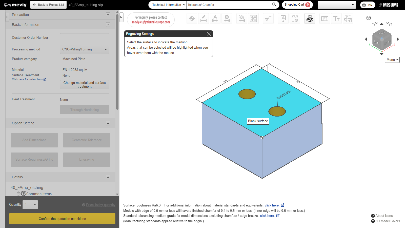- To specify part number engraving, click “Add Part Number”. A temporary part number (MVBLK-XXX-XXX-XXX-XXX) will be issued and displayed in the 3D Viewer.