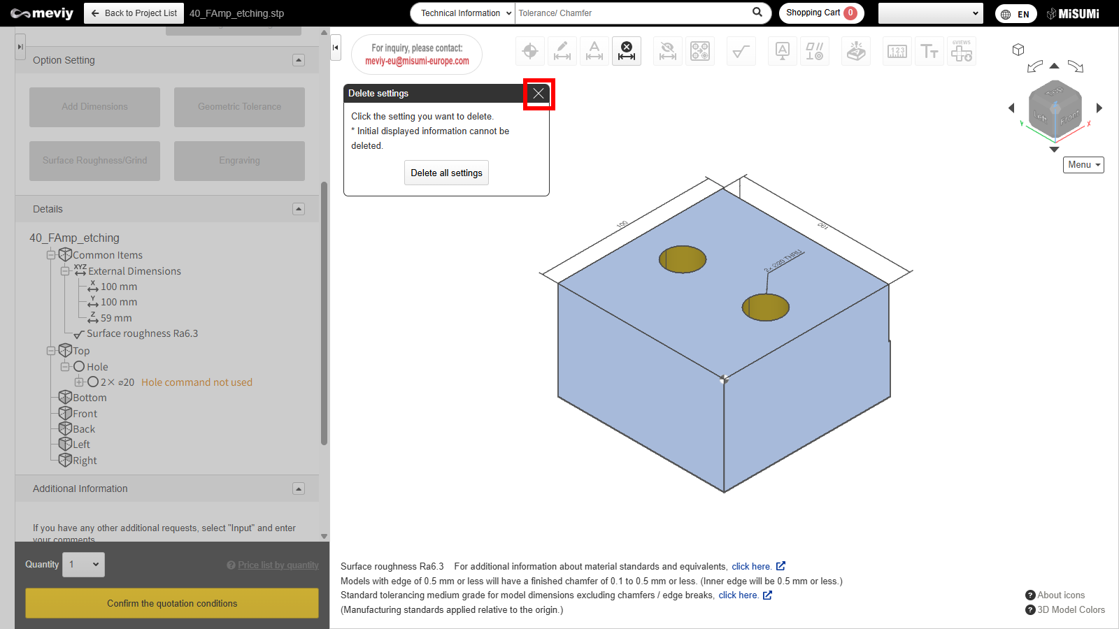 Characters that can be entered in the dialog are single-byte alphanumeric characters and some symbols (+-. #$%&()=*:? /_~).The complete part number will be displayed after you click “Confirm the quotation conditions”.