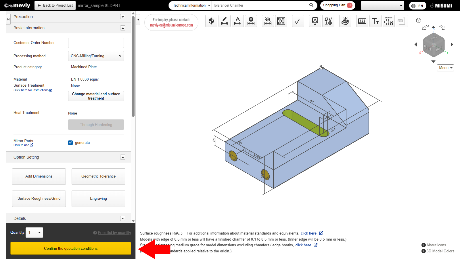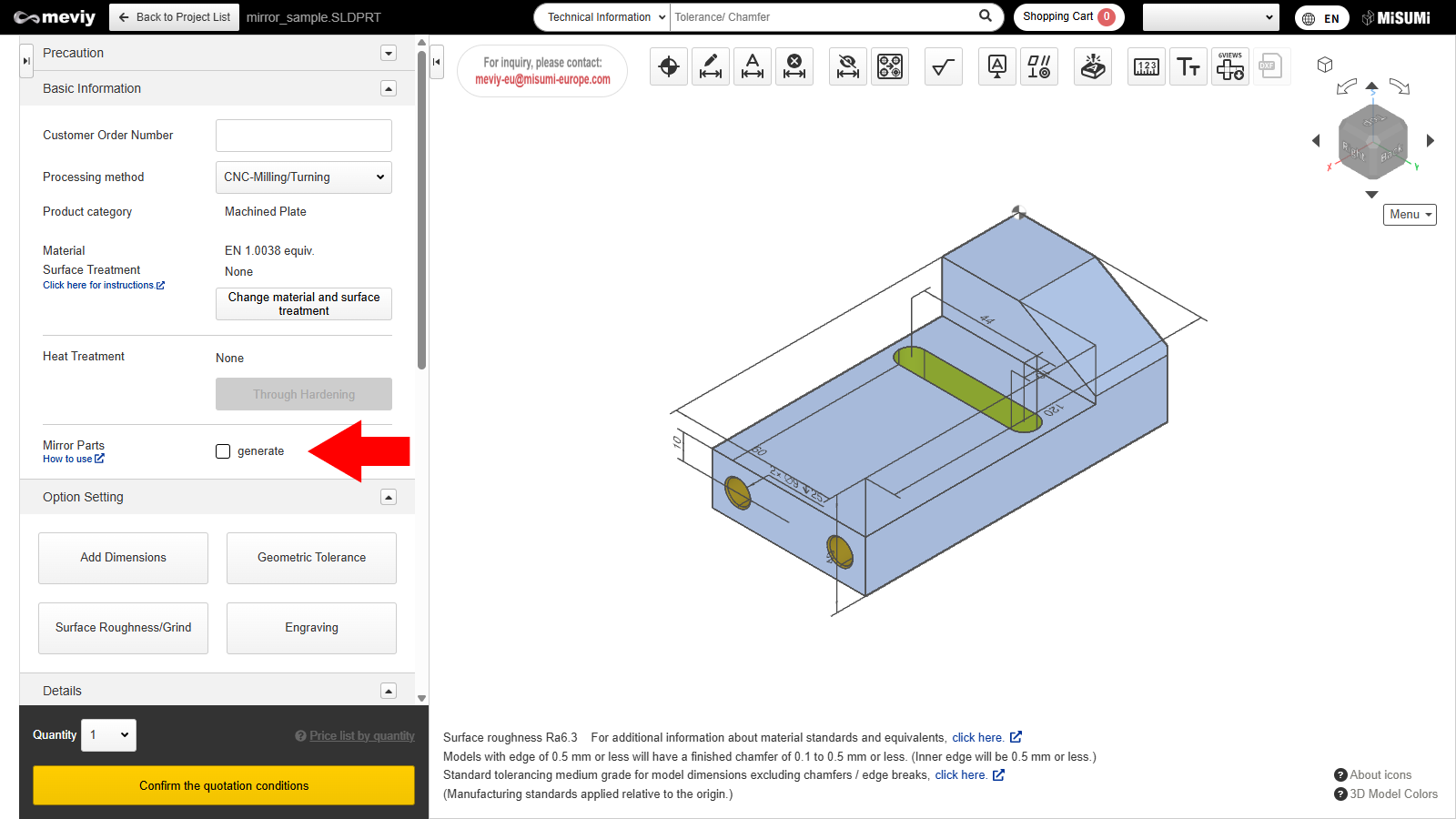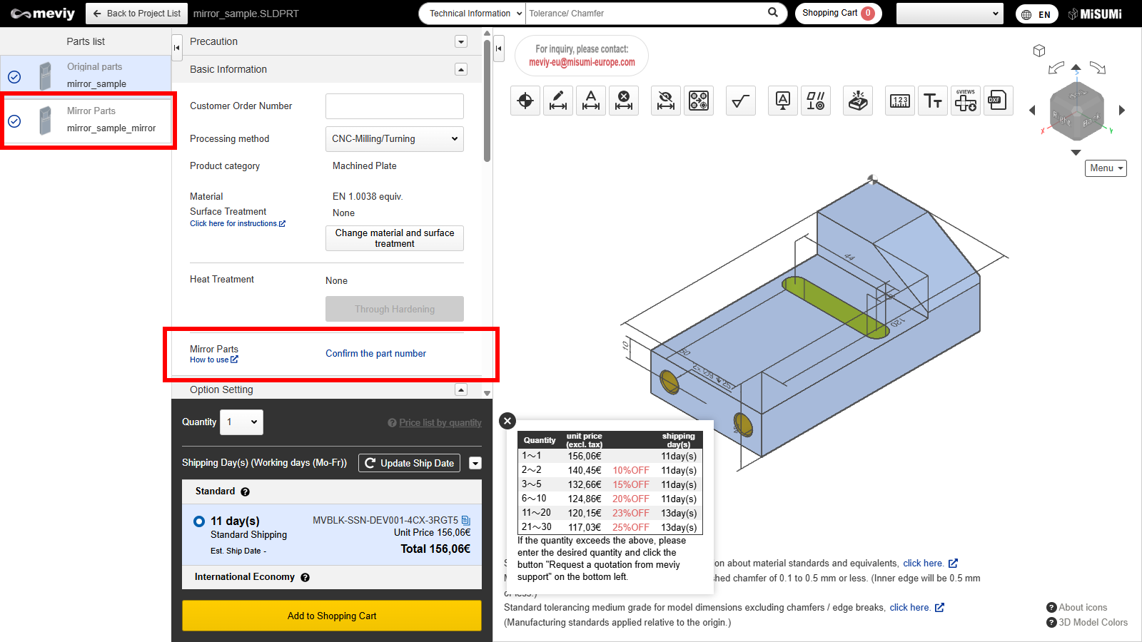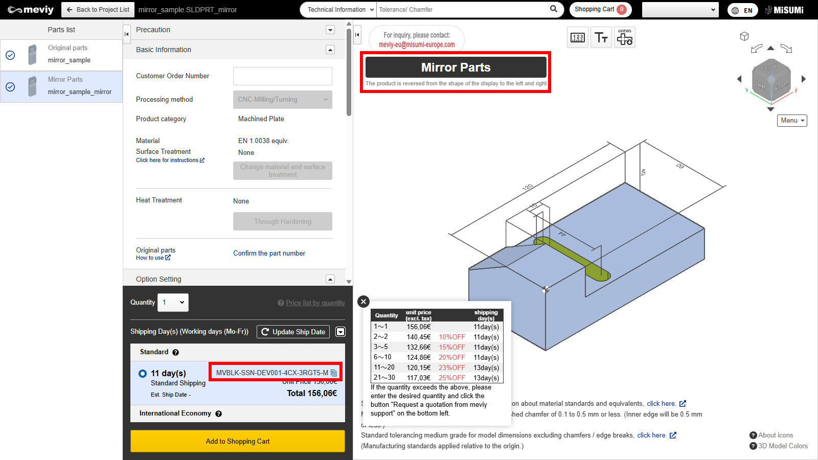 *On the meviy 3D viewer, the model of the mirror part will not be reversed.
