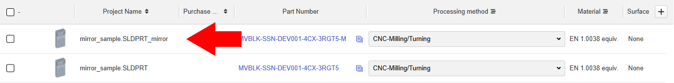- The project name for the generated mirror part has “_mirror” appended to the end.