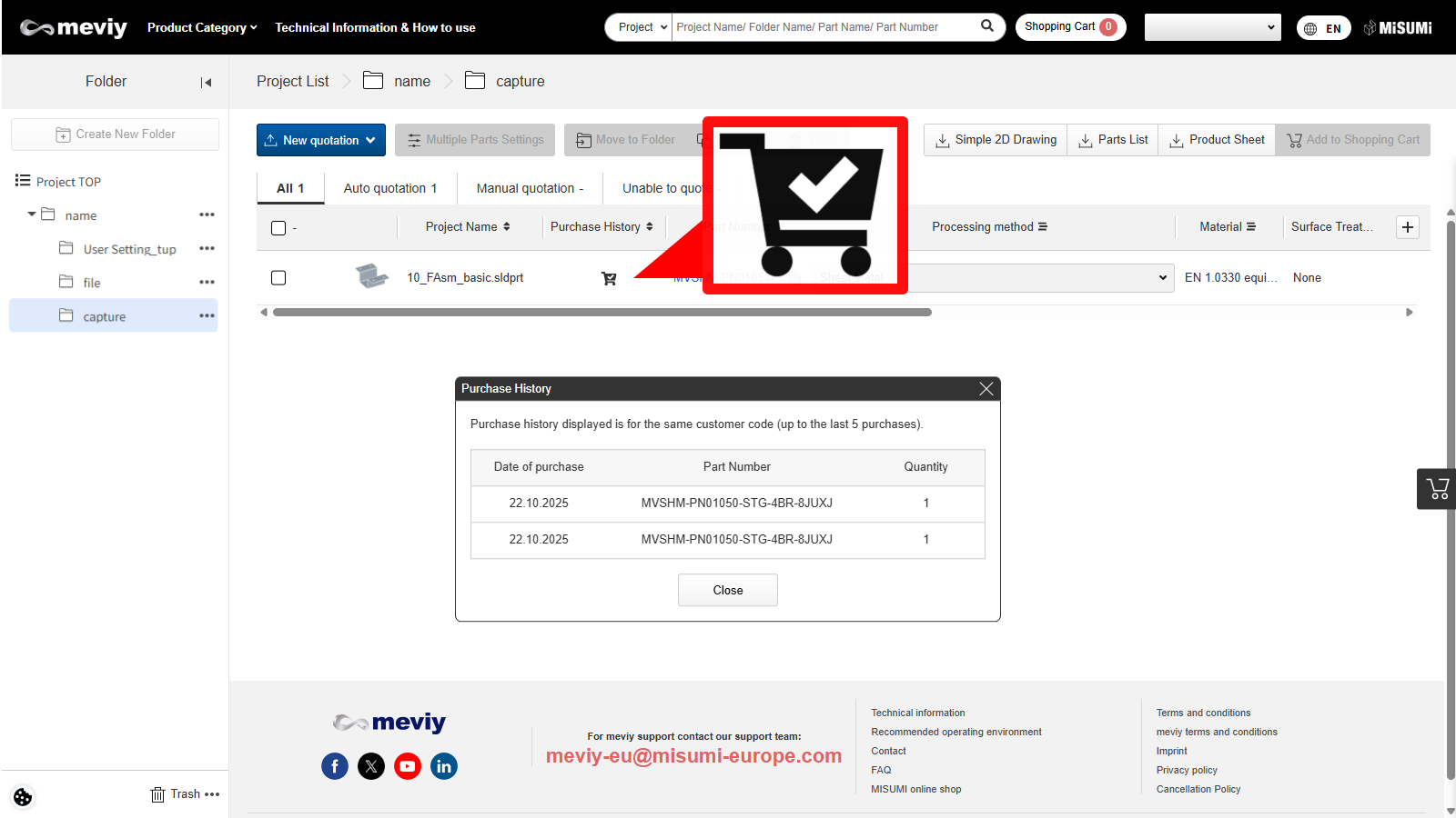 *Even if you have not made a purchase yourself, if there is a purchase from a MISUMI account with the same customer code, the history will be displayed.