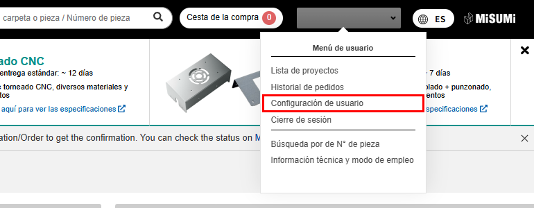 Pase el cursor sobre su nombre de usuario y haga clic en [Configuración del usuario] en el menú de usuario.