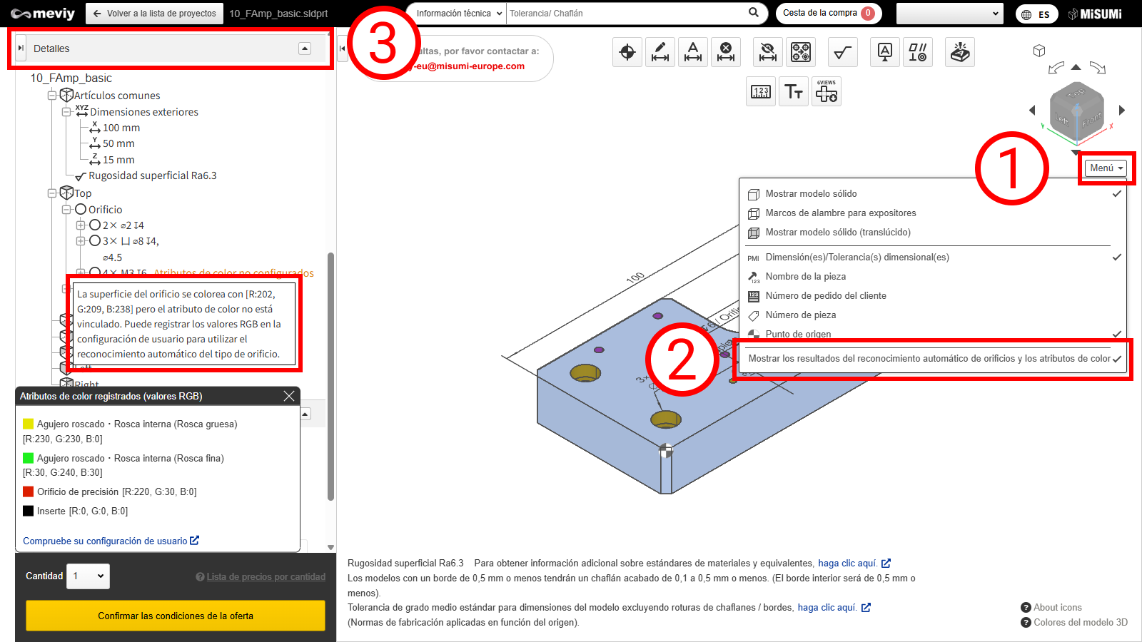 • *Estos atributos de color son el resultado del análisis propio de meviy y pueden no coincidir con los valores de los atributos de color establecidos en su software CAD.