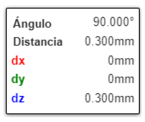 Muestra los componentes XYZ que configuran la distanza medida en mm.