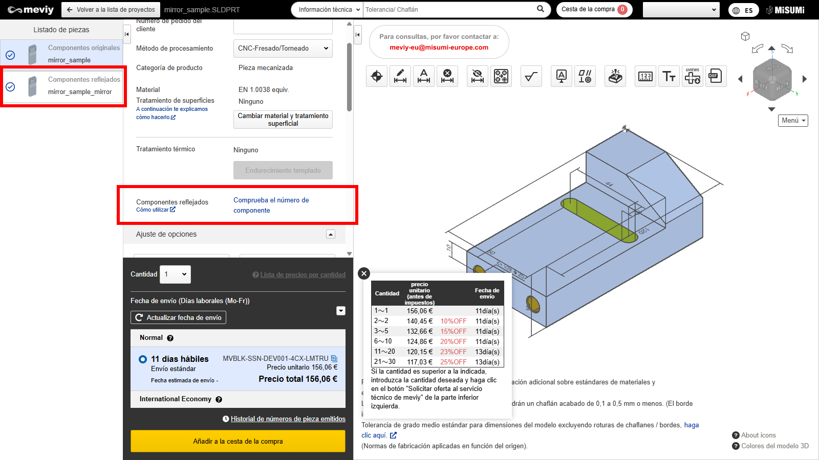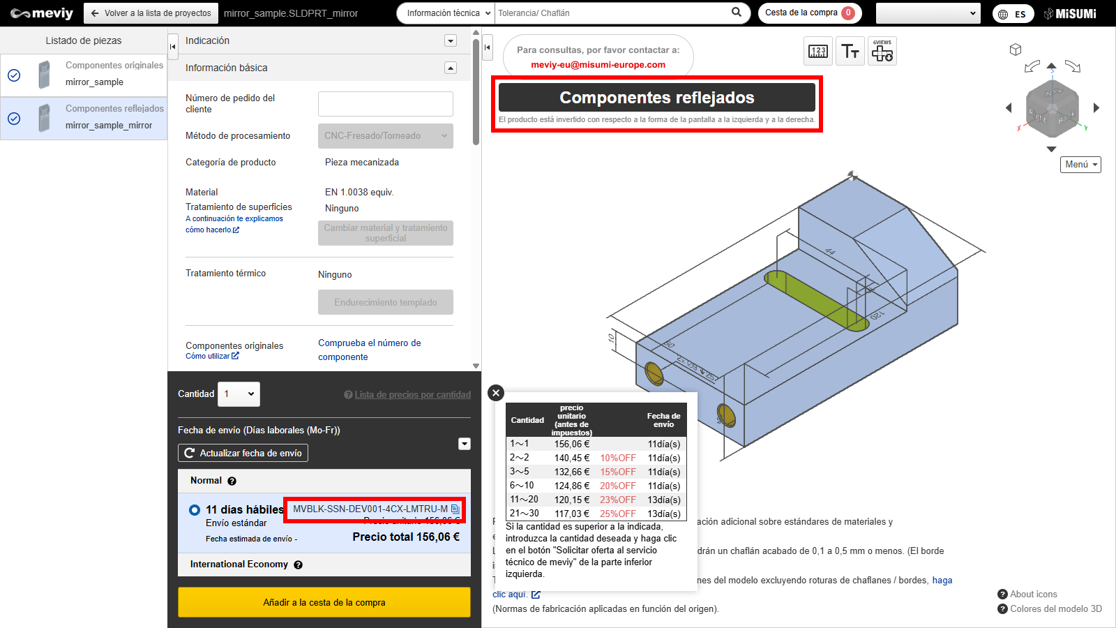 *En el visor 3D de meviy, el modelo de la pieza espejo no se invertirá.