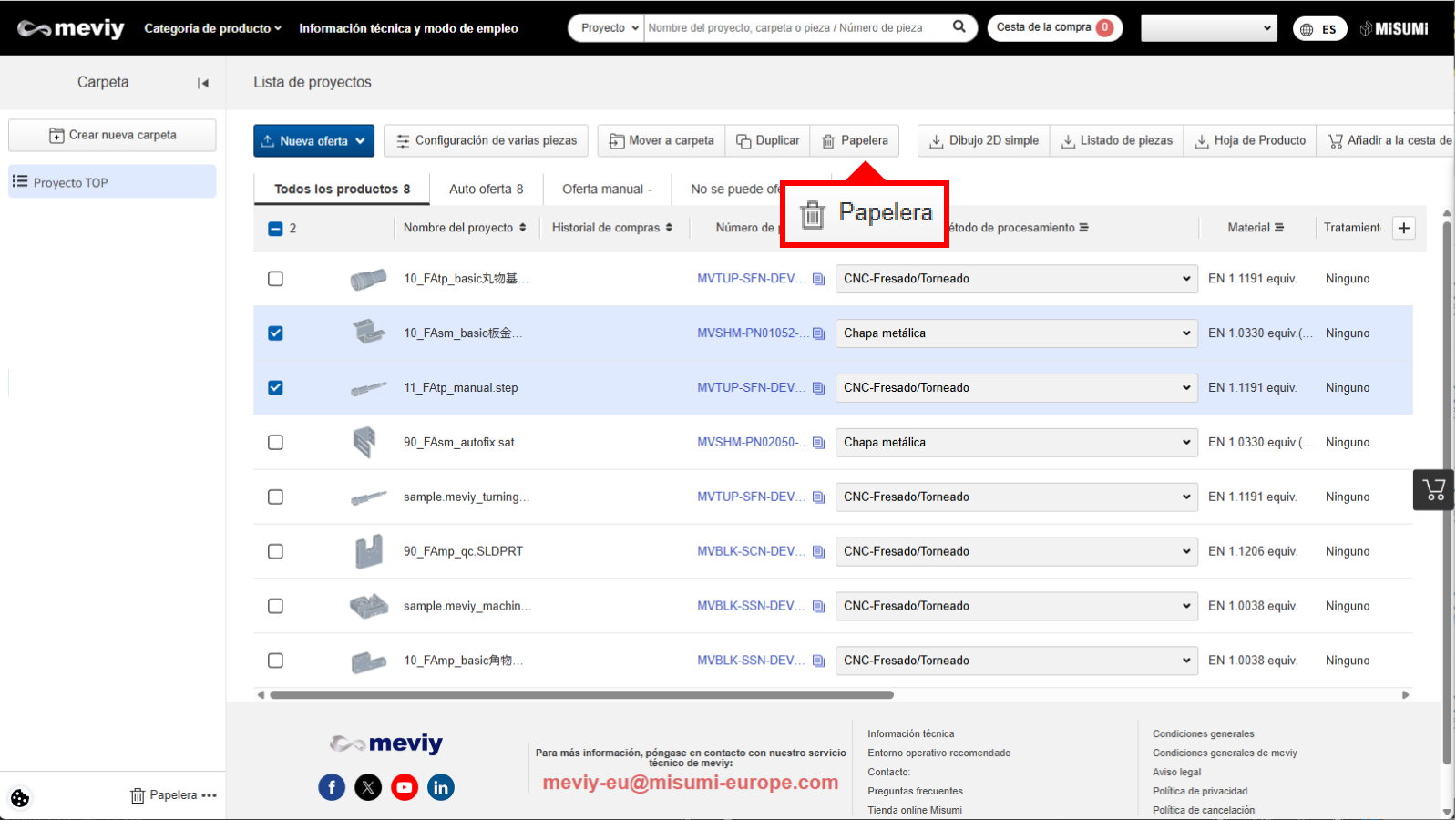 Mover un proyecto a la papelera