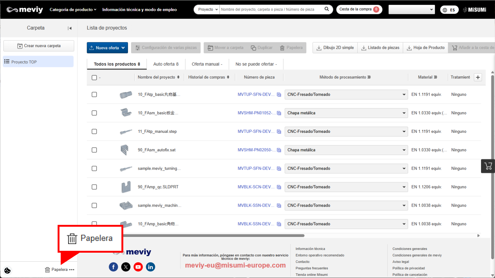 Eliminación y restauración de proyectos (función Papelera)