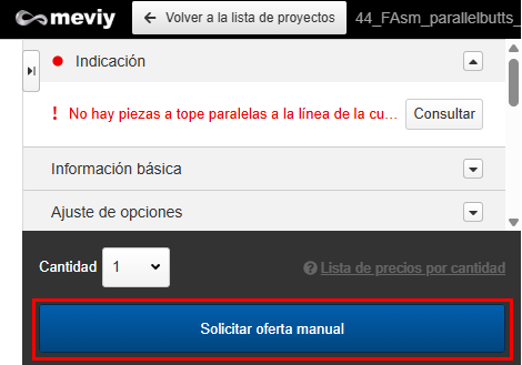 - No es posible solicitar un oferta manual si no aparece el botón «Solicitar oferta manual».