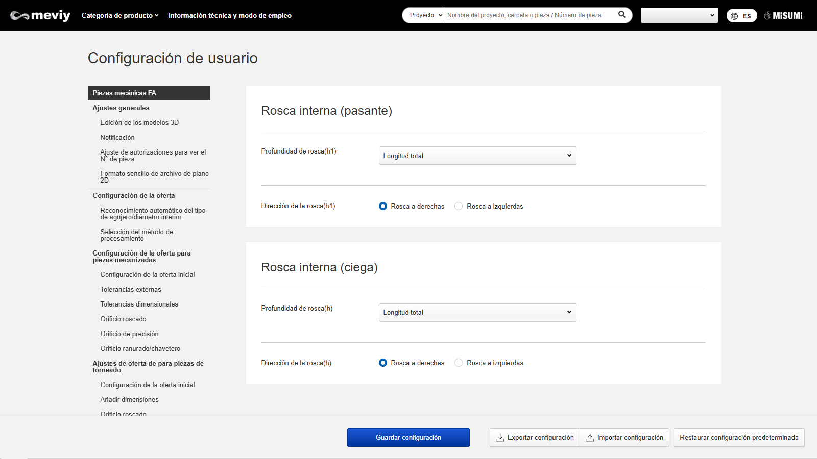 Puede cambiar el rango de tolerancia, los rangos de tolerancia utilizados con frecuencia, la profundidad efectiva y la rugosidad superficial (ninguna/presente) que se muestran en la lista del cuadro de diálogo «Indicar información del agujero».