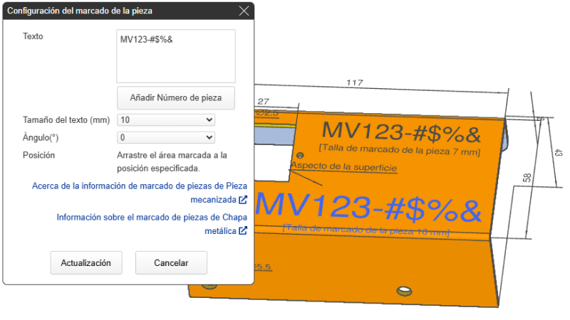 ・No es posible especificar el ancho de las letras (aprox. 0,1 mm), la profundidad del grabado ni la distancia entre las letras.