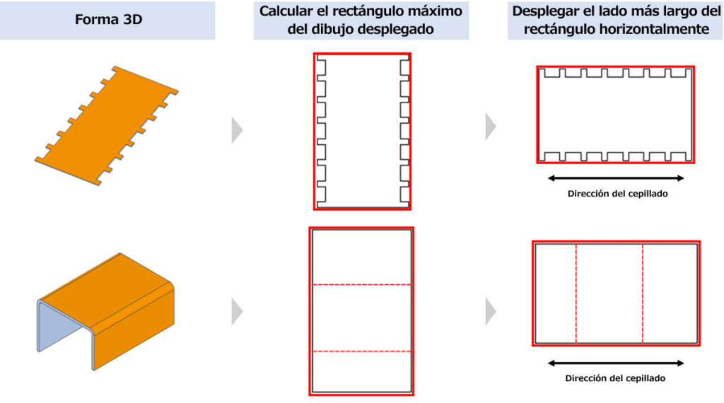 Se calcula el rectángulo máximo del dibujo desplegado y se aplica horizontalmente en la dirección del lado más largo del rectángulo.