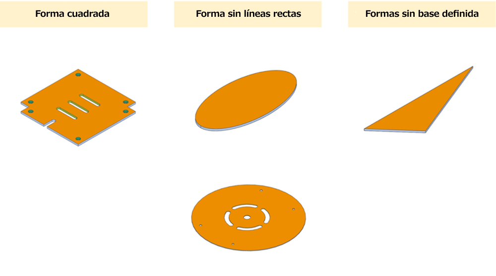 En algunos casos, el rectángulo máximo del dibujo desplegado no está definido, o no se puede definir el lado más largo del rectángulo (véase la figura de la derecha). Para estas formas, la dirección de cepillado es opcional, y puede especificar la dirección deseada en el presupuesto con el servicio de asistencia de meviy.