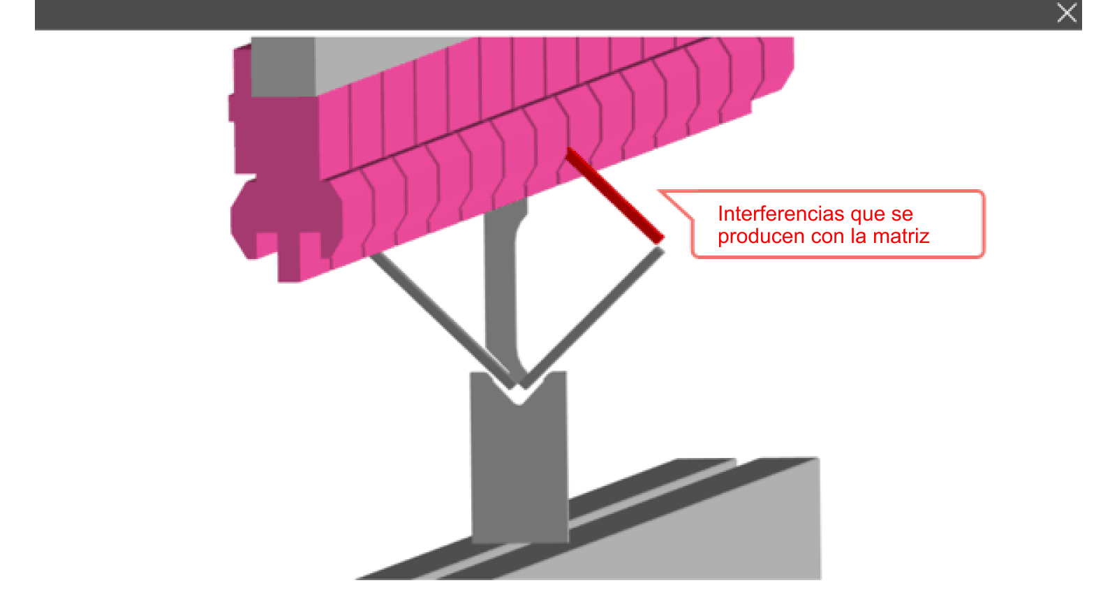 - Tenga en cuenta que, si el valor es inferior al valor mínimo, la línea de doblado puede desplazarse porque parte de la pieza ya no está cubierta por la matriz de doblado.