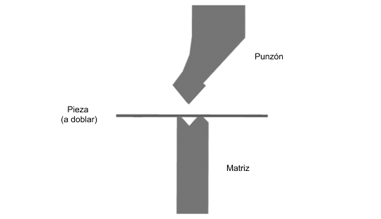 - El proceso de doblado se lleva a cabo colocando la pieza (que se va a doblar) sobre una matriz y perforándola desde arriba.