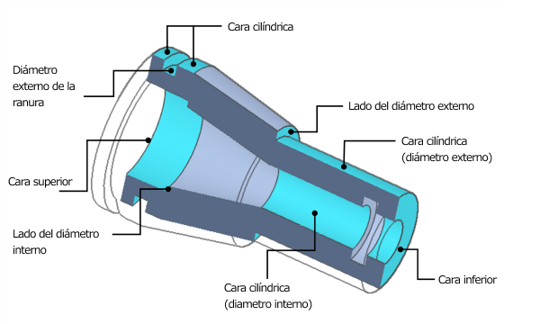 - No se pueden especificar orificios, ranura (diametro interior/diametro exterior), hendidura (incluidas las cavidades), ranuras de diámetro interior y ranuras en los extremos.