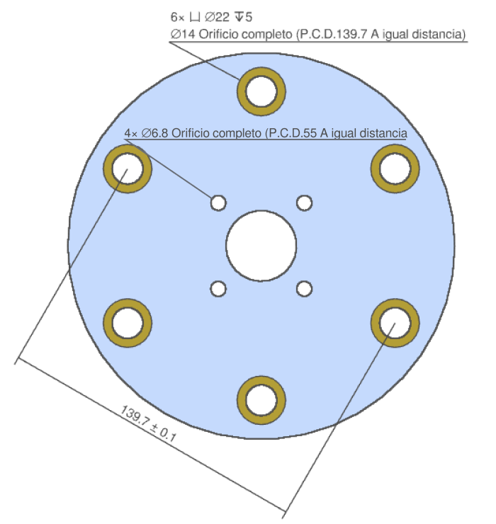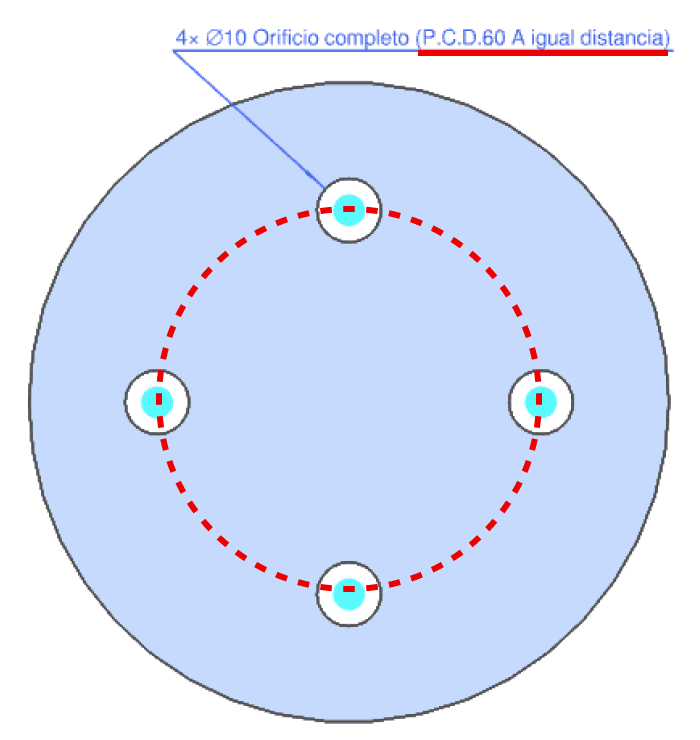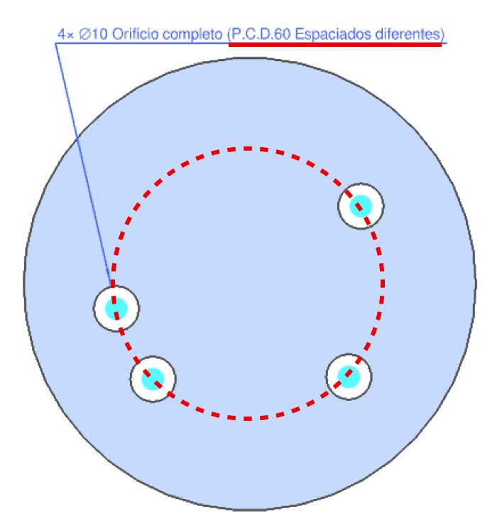 - (4) Es posible añadir dimensiones diagonales que indiquen la distancia entre los orificios y el P.C.D.