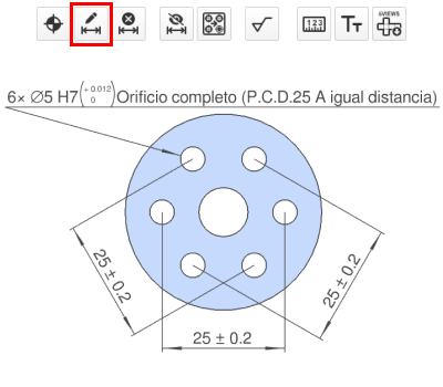 - Si necesita especificar la tolerancia entre los agujeros, haga clic en el icono «Añadir tolerancia» y especifique la tolerancia para la posición de destino.