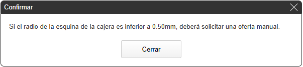 Causa | En algunos casos, las esquinas afiladas de los bolsillos no se pueden mecanizar con una fresa y no es posible realizar una cotización. |