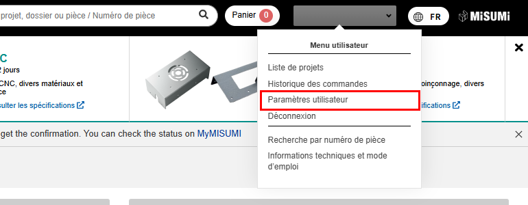 Passez la souris sur votre nom d’utilisateur et cliquez sur [Paramètres utilisateur] dans le menu utilisateur.