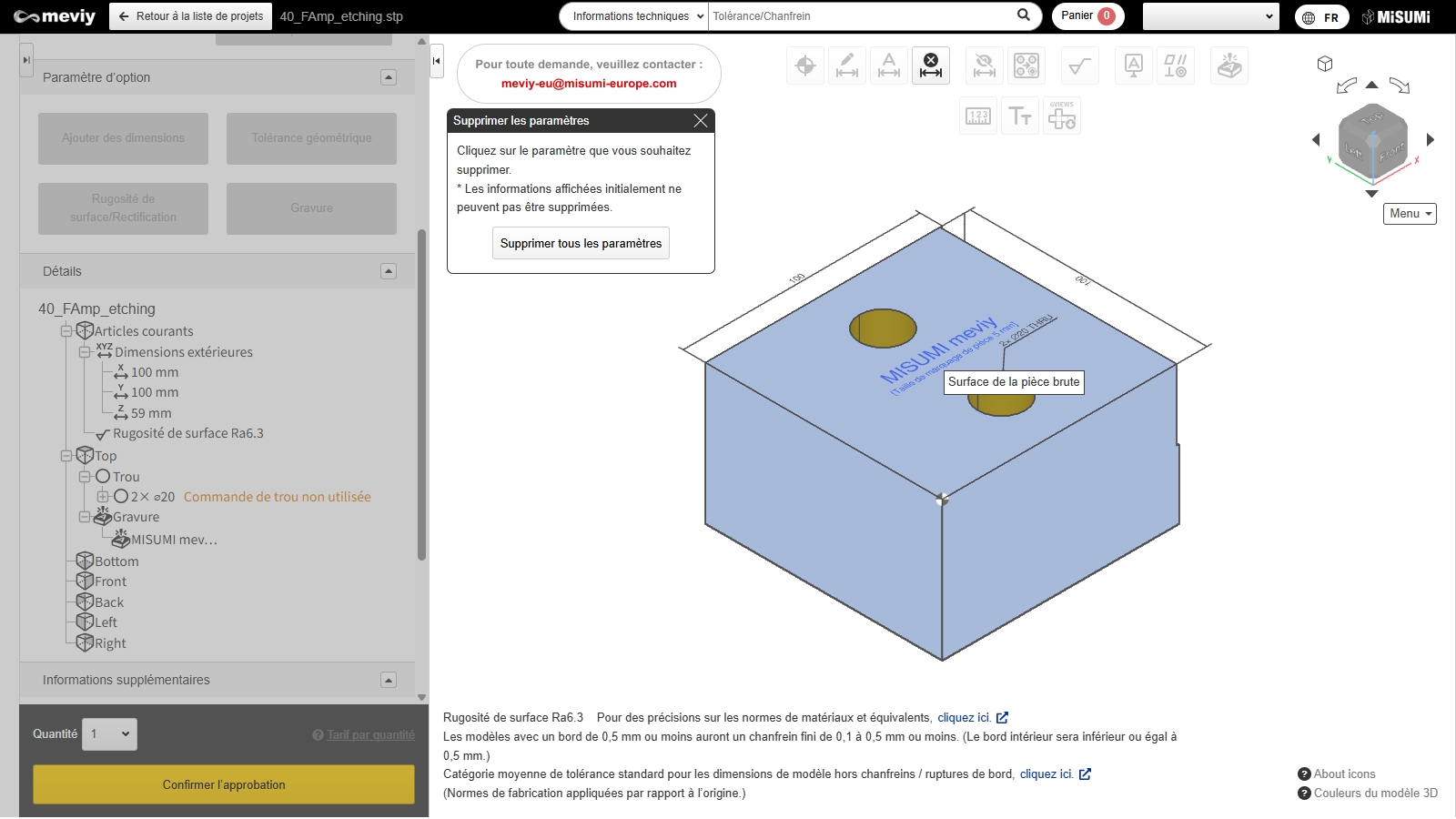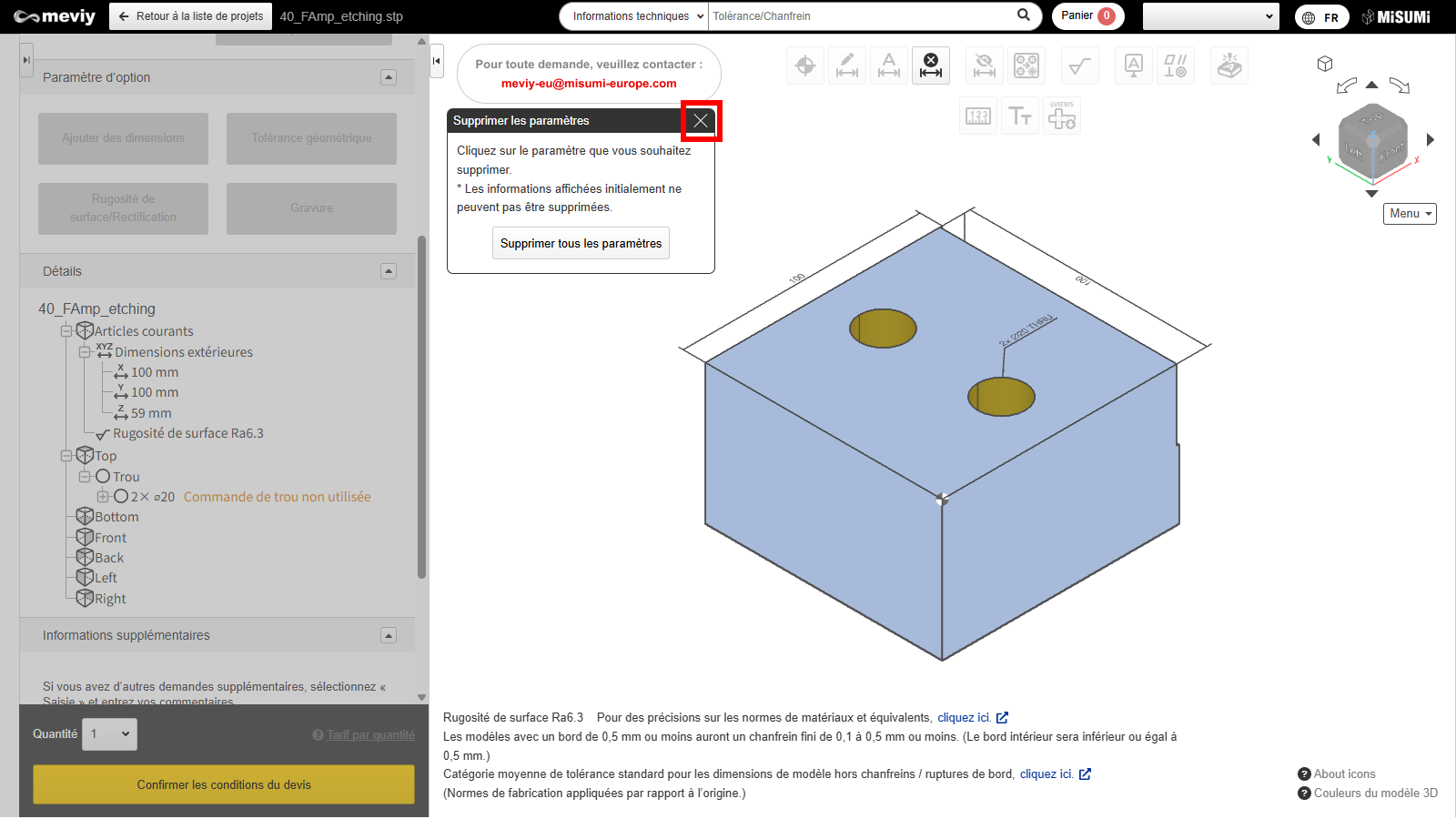 - [Fraisage CNC] Paramètres de devis