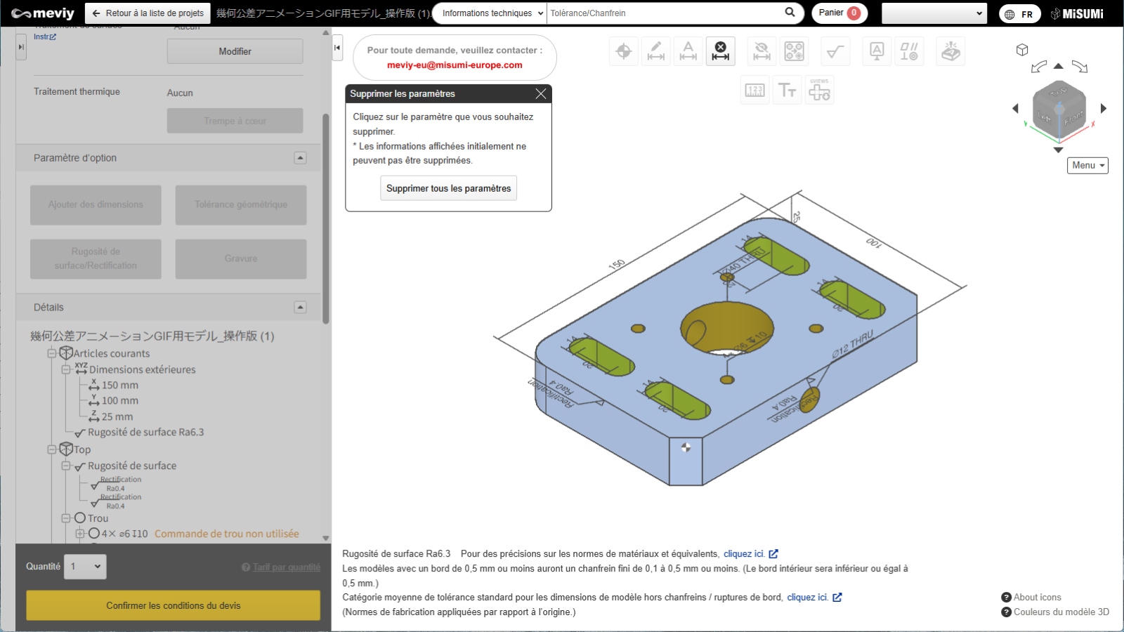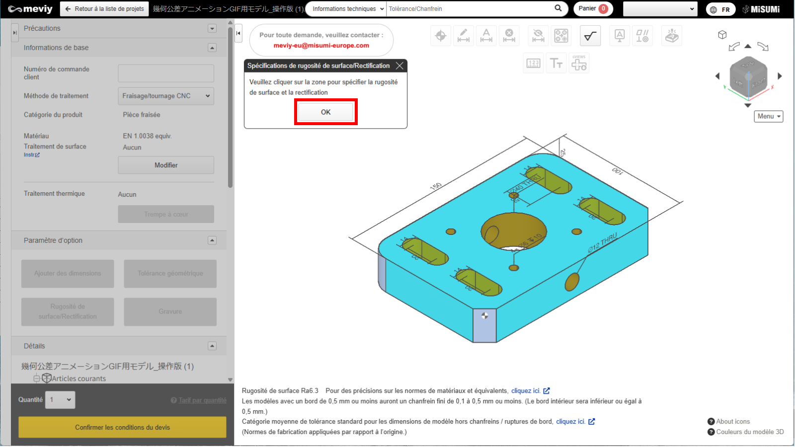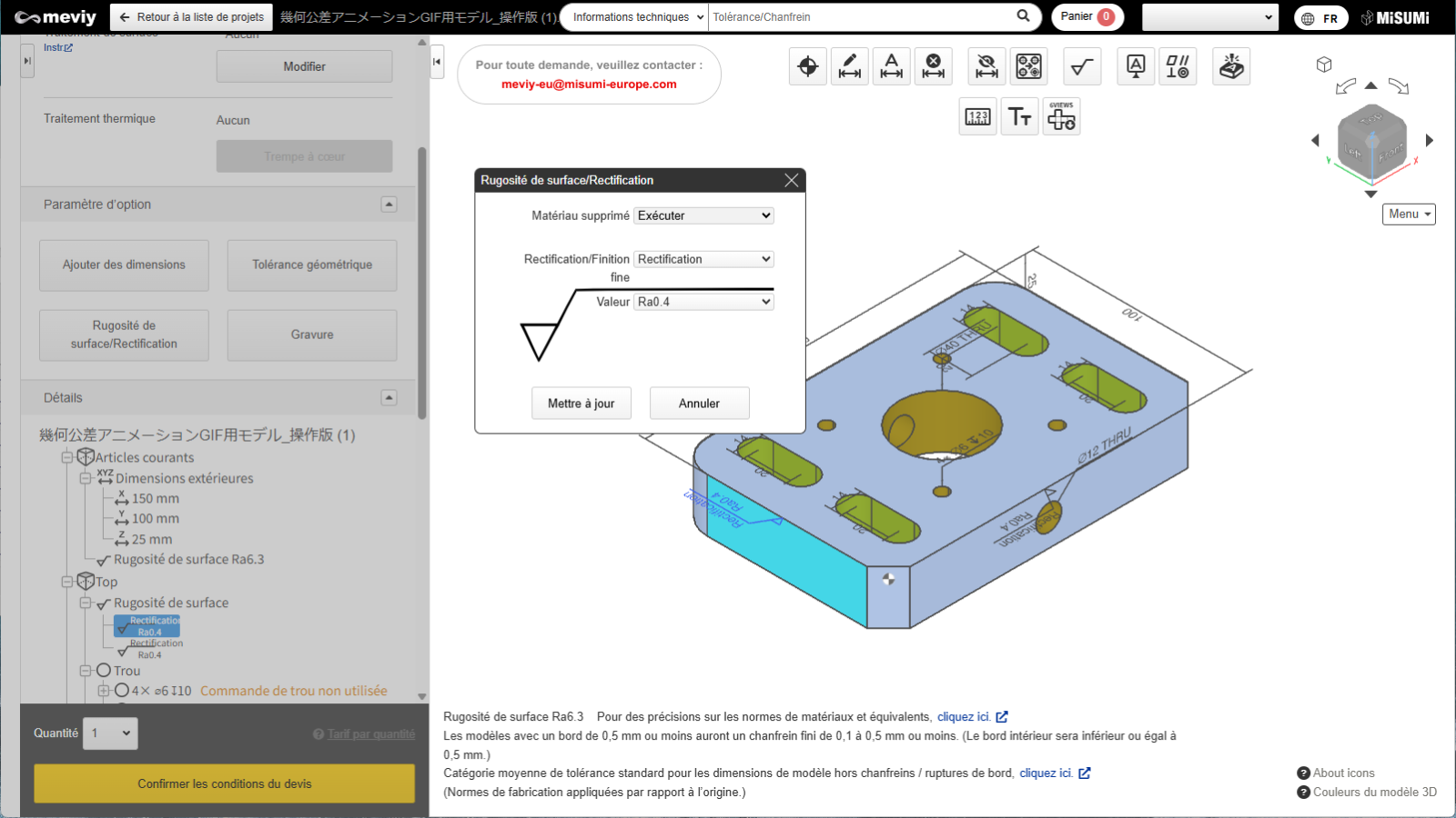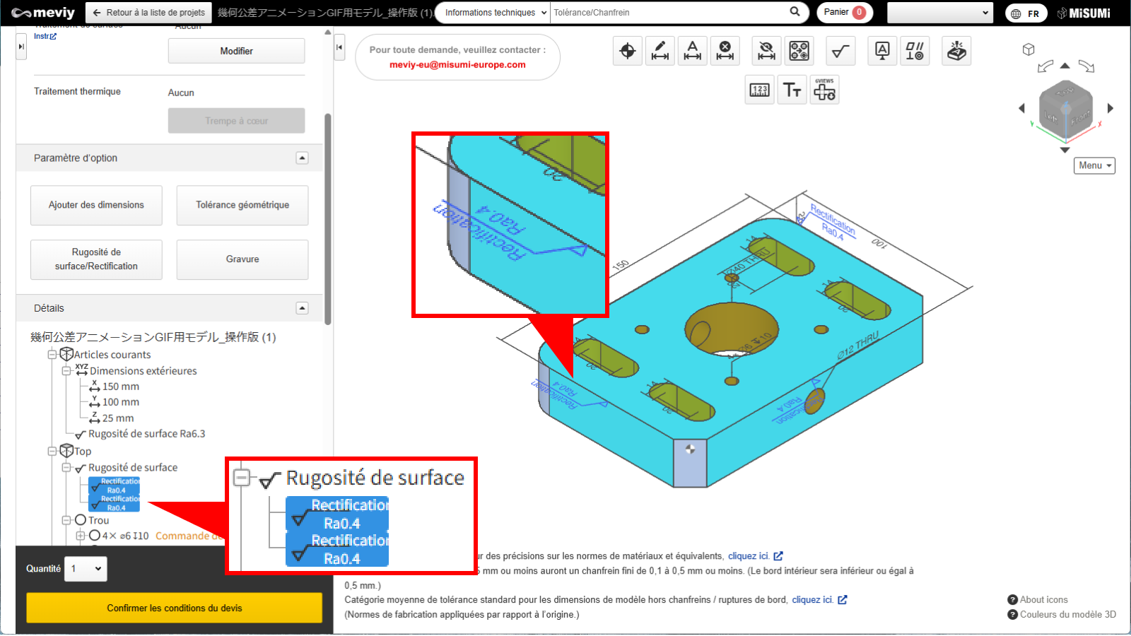 7.La rugosité de surface ajoutée est affichée dans l’arbre sous les détails et sur l’écran du visualiseur.