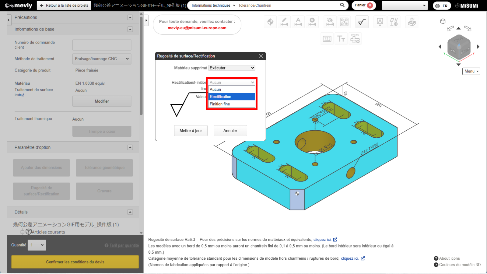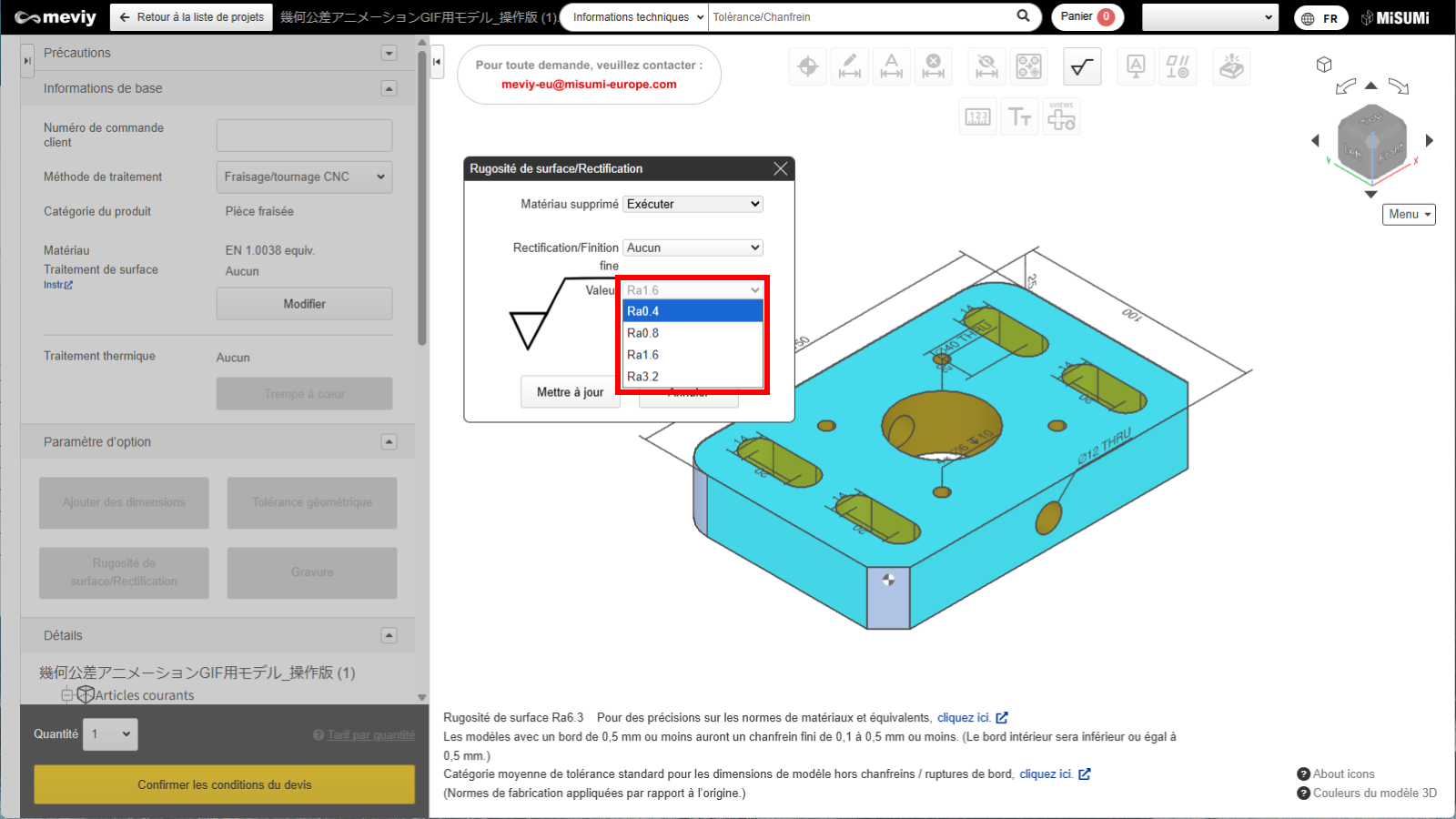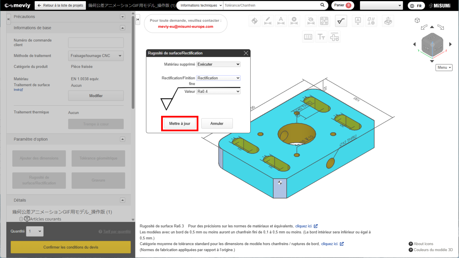 6.Après avoir sélectionné la valeur de rugosité de surface et les options de traitement, cliquez sur le bouton « Mettre à jour » pour terminer le réglage.
