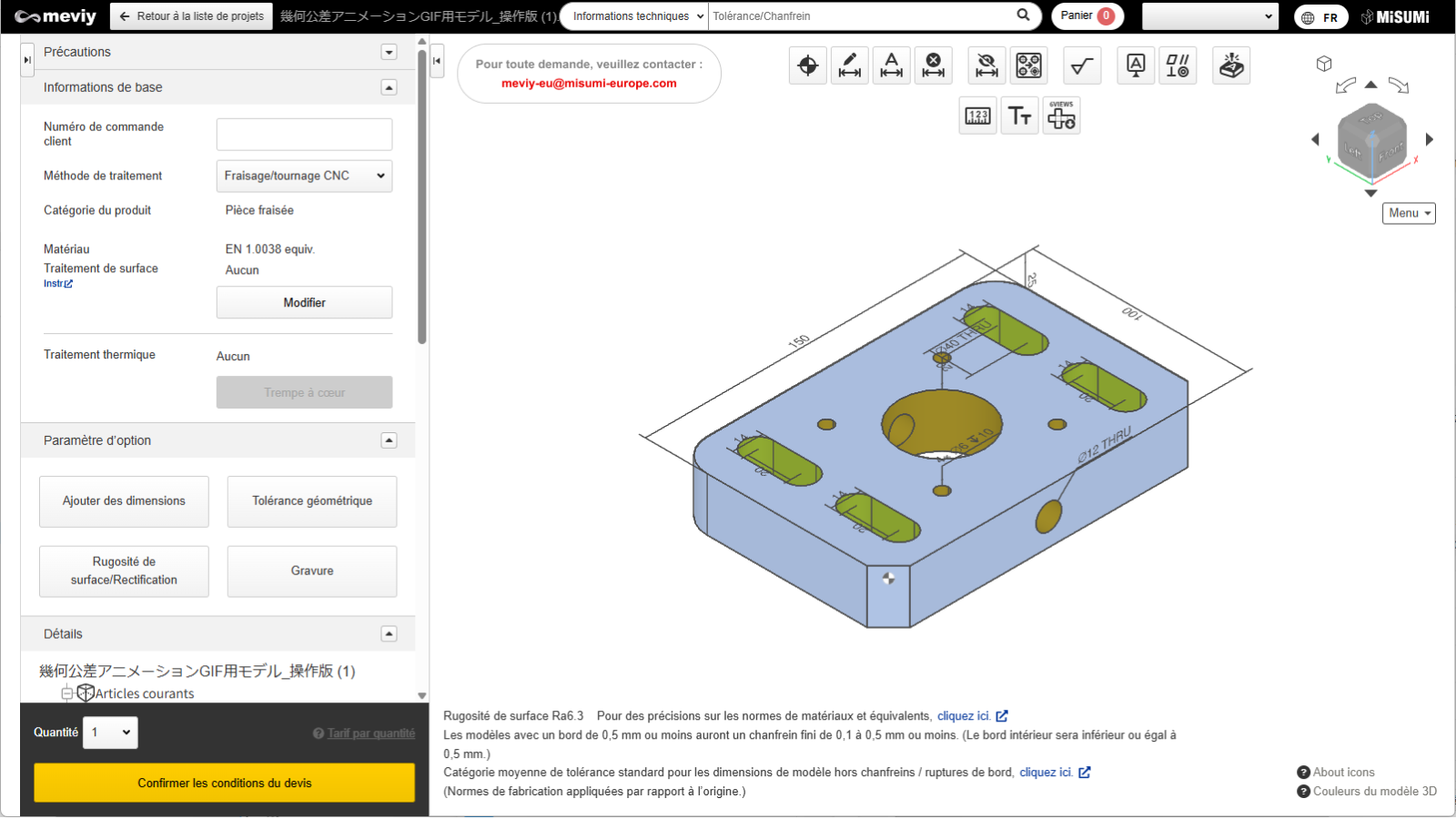 • La Visionneuse 3D vous permet de manipuler les modèles à partir des données 3D téléchargées sur meviy de la même manière qu’avec un logiciel de CAO.