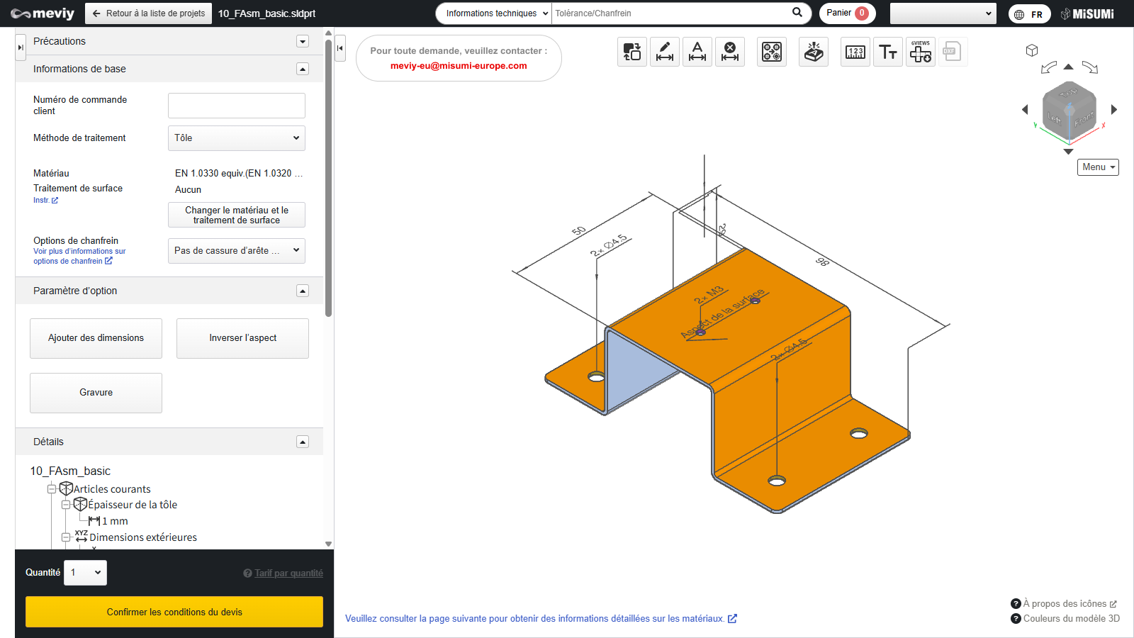 Si l’aspect extérieur des faces identifiées par meviy (faces colorées en orange foncé) ne correspond pas à ce que vous attendiez, vous pouvez inverser les faces internes et externes.