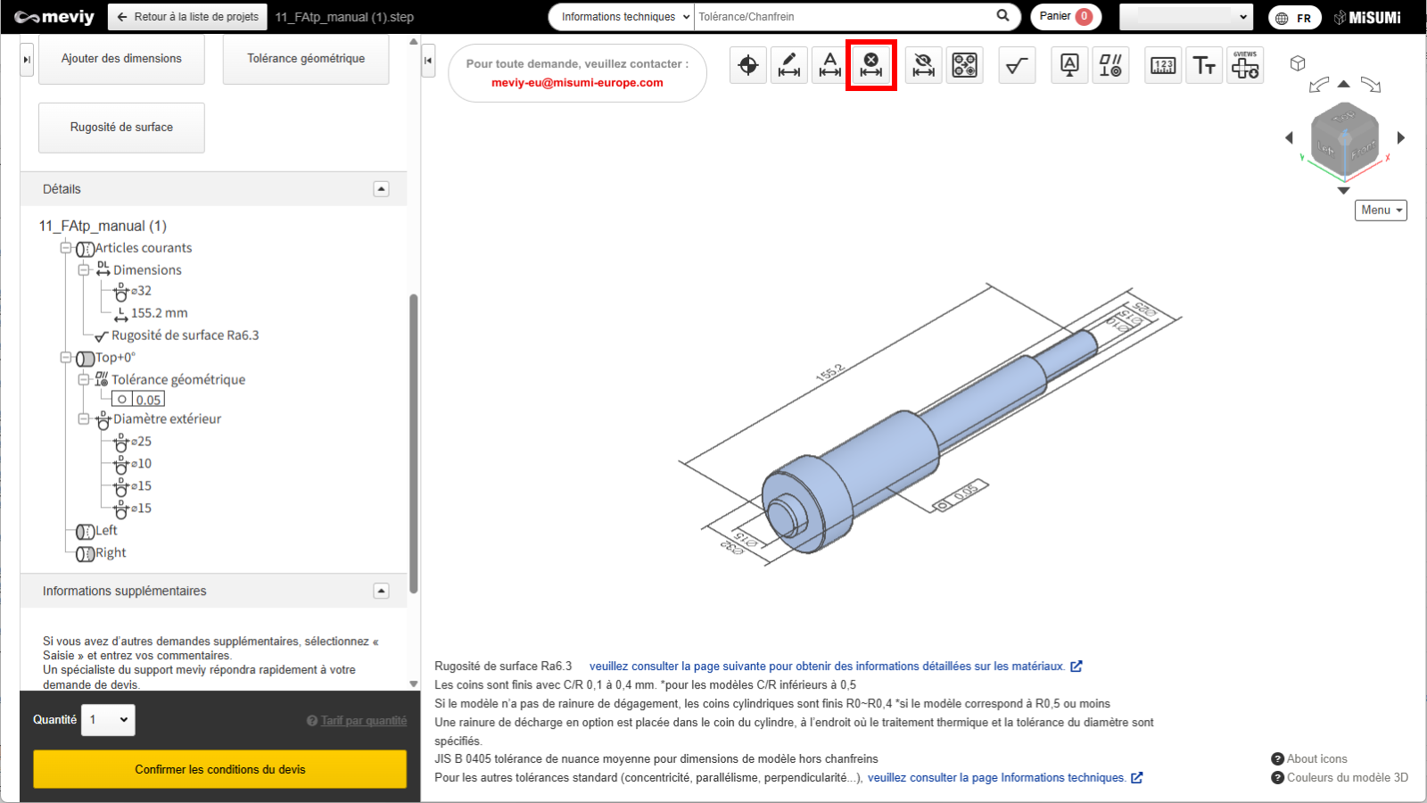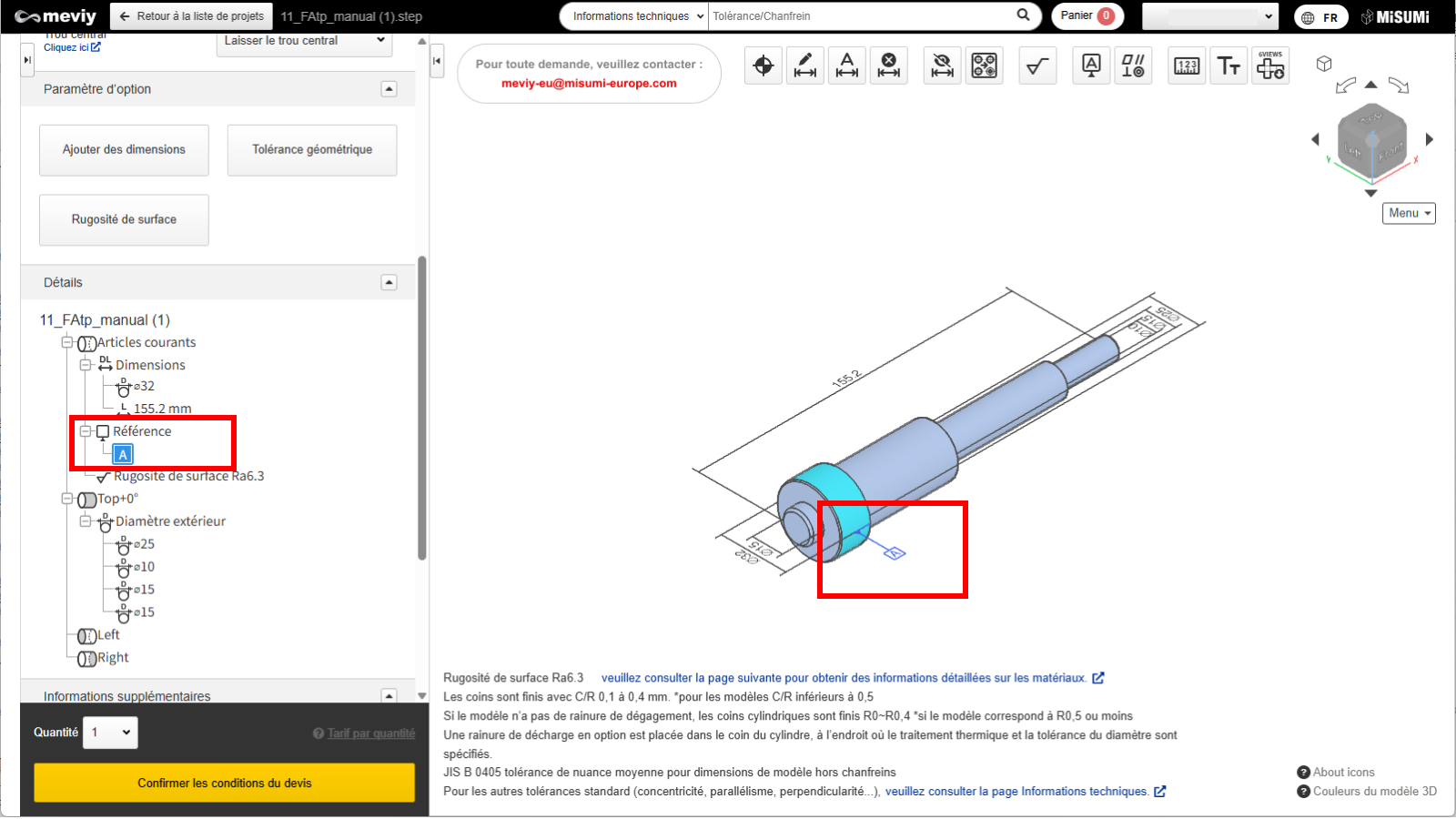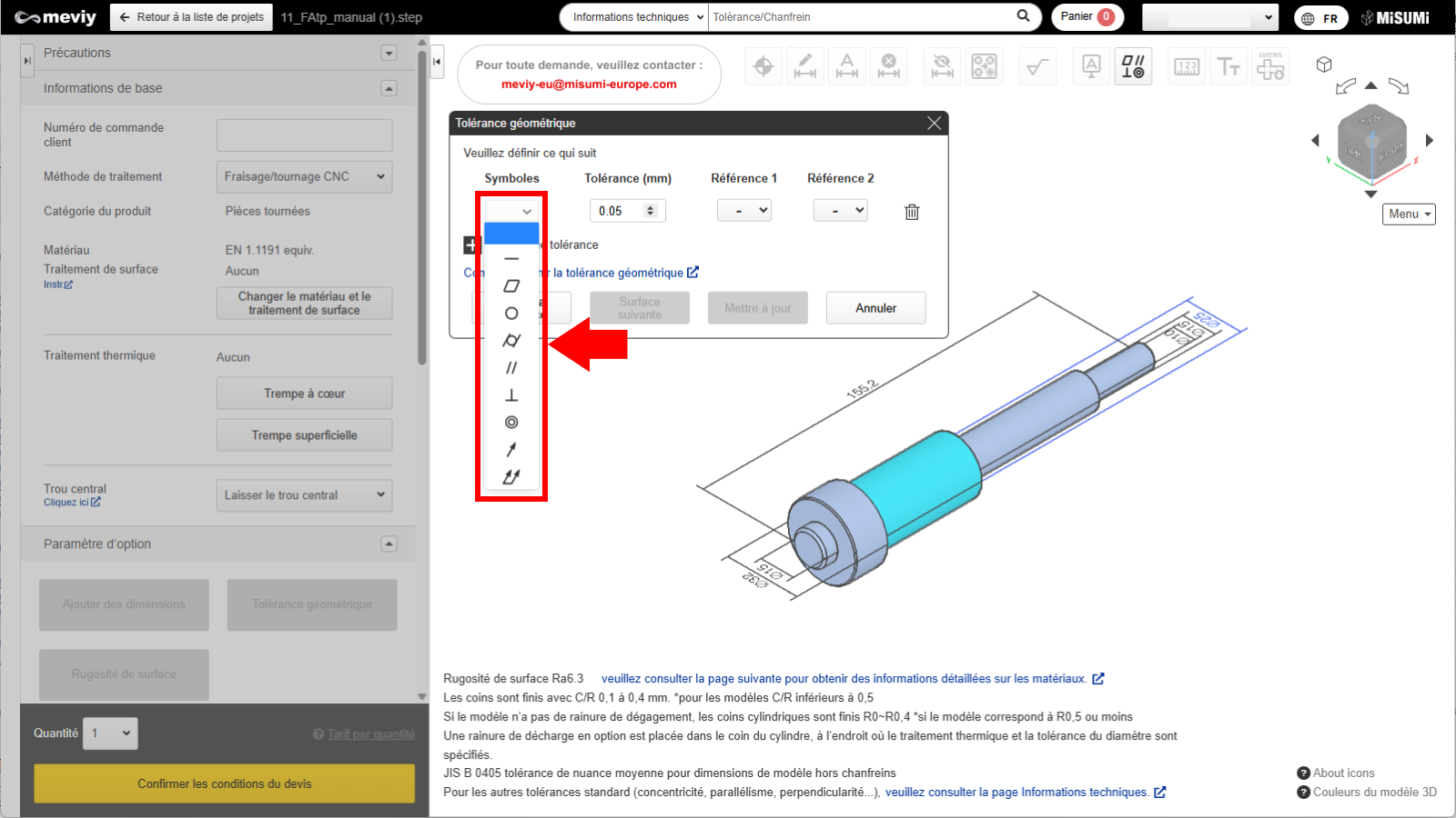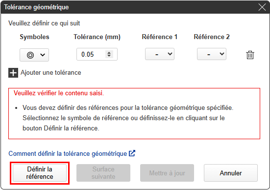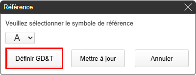 Si vous avez besoin de symboles pour les tolérances géométriques et les valeurs de tolérance, cliquez sur le bouton « Mettre à jour » après avoir terminé la sélection des points de référence.