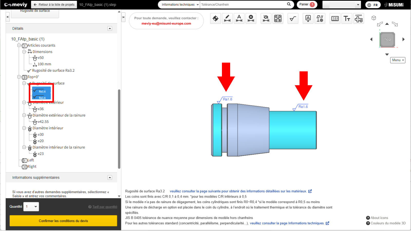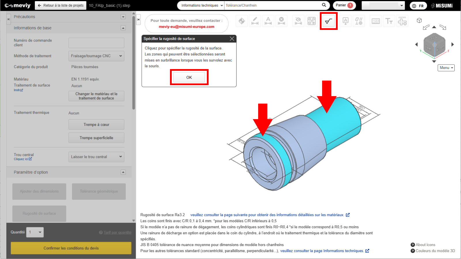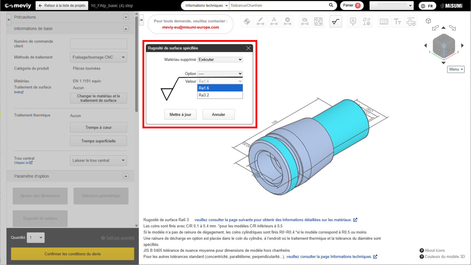 3. La rugosité de surface ajoutée peut être vérifiée dans le modèle 3D ou dans Détails.