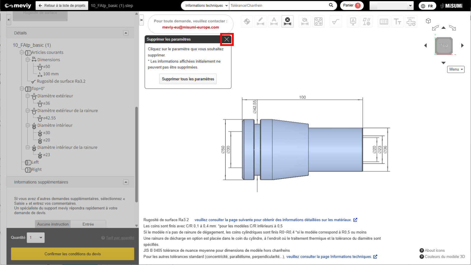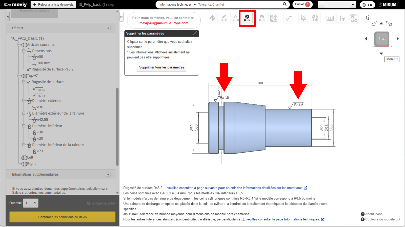 [IMAGE] Supprimer PMI, puis sélectionnez la rugosité de surface à supprimer.