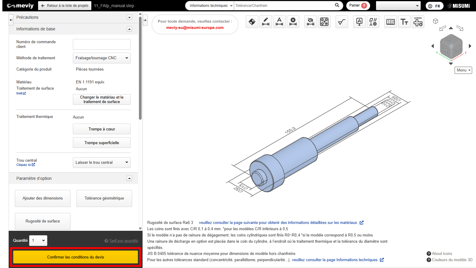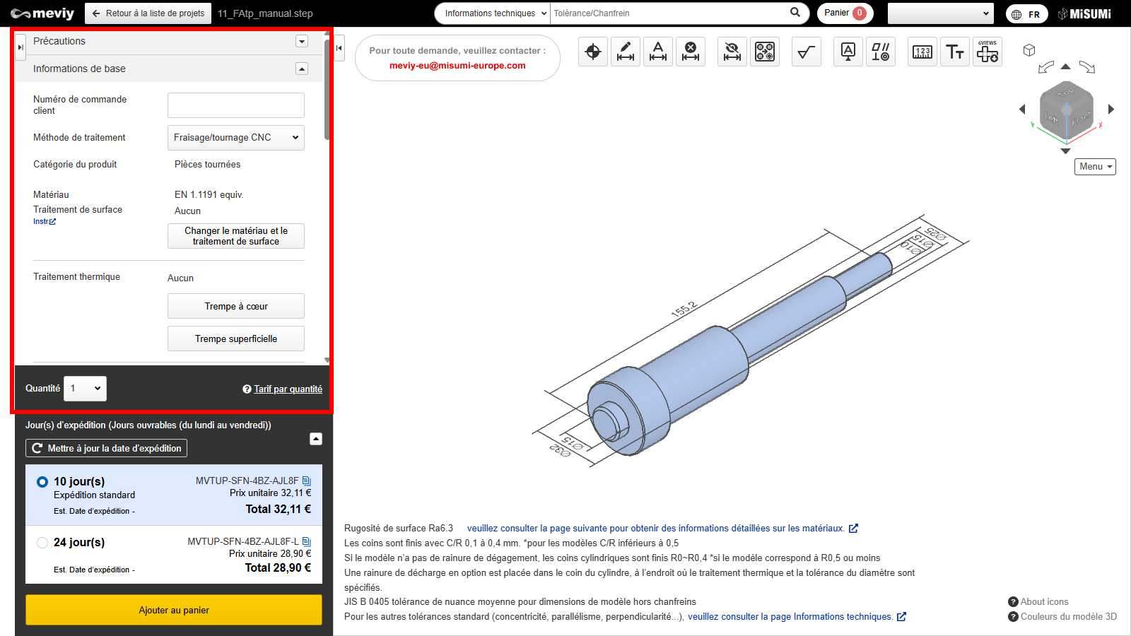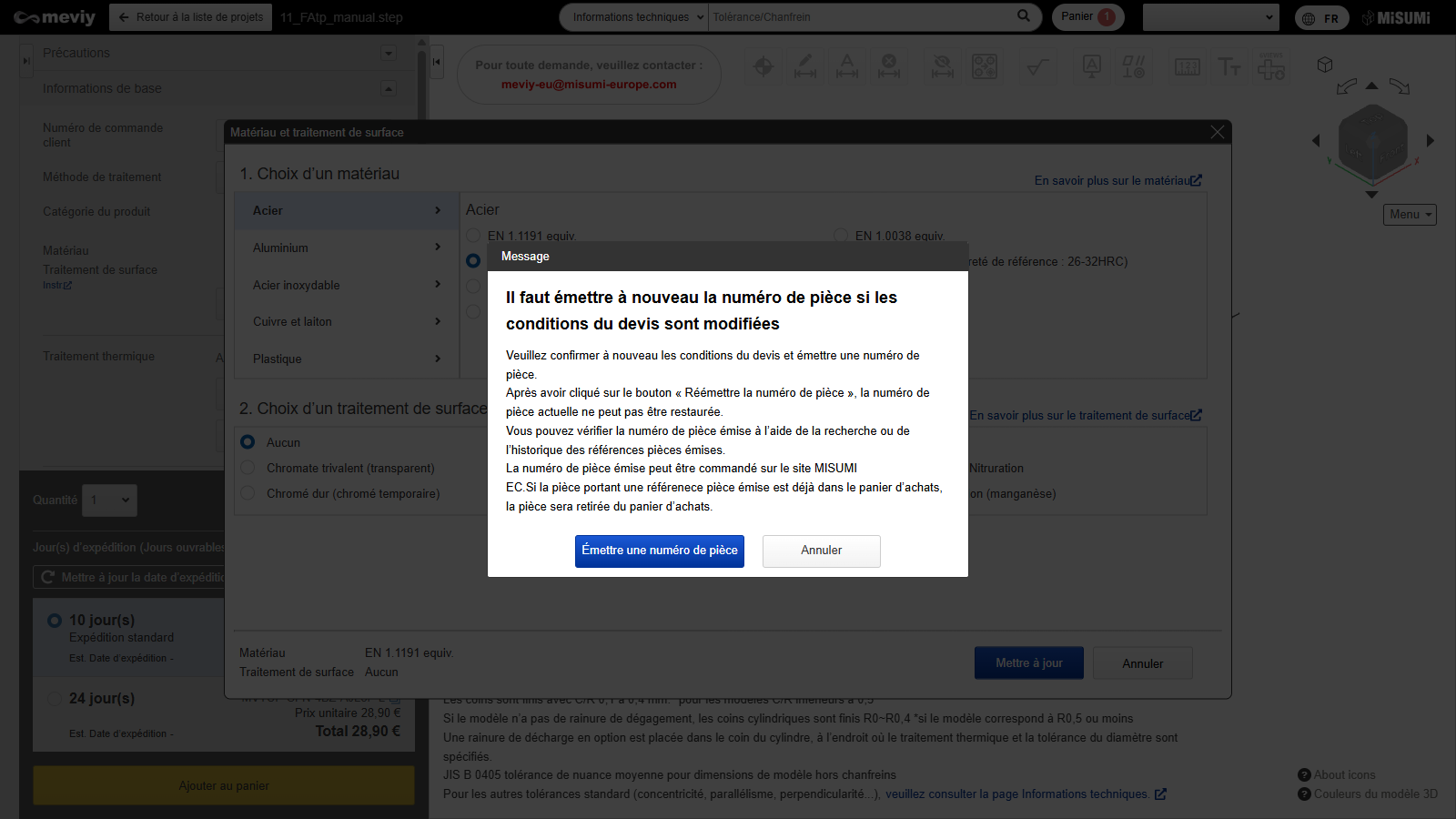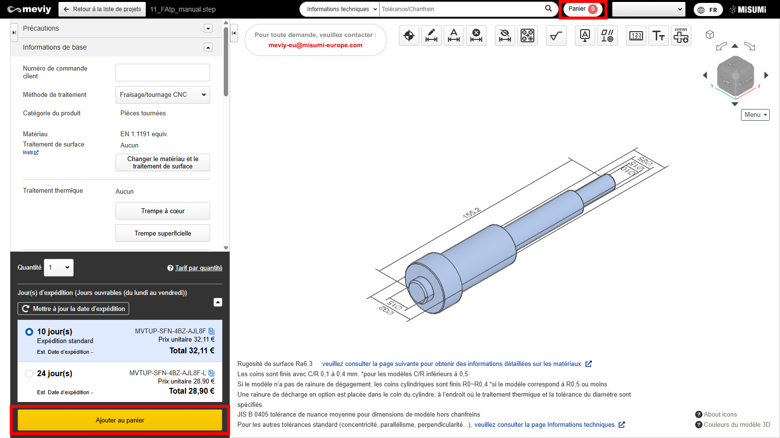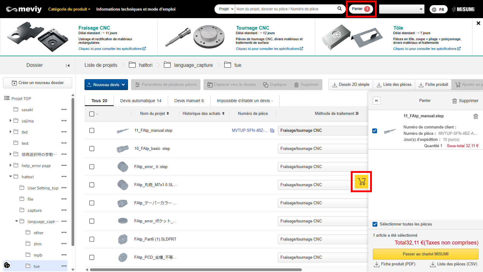 1. Retournez à la liste des projets et ajoutez les pièces souhaitées à votre panier pour vérifier les résultats du devis.