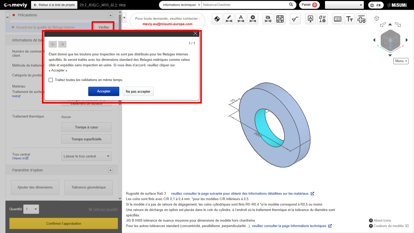 1. Dans « Précautions », cliquez sur [Vérifier]. L'emplacement approprié sera mis en surbrillance et la boîte de dialogue [Accords] s'affichera.