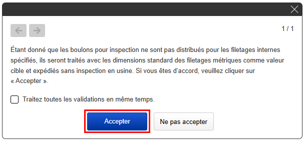 Si vous sélectionnez [Accepter] pour tous les accords, vous pourrez cliquer sur le bouton [Confirmer le devis].