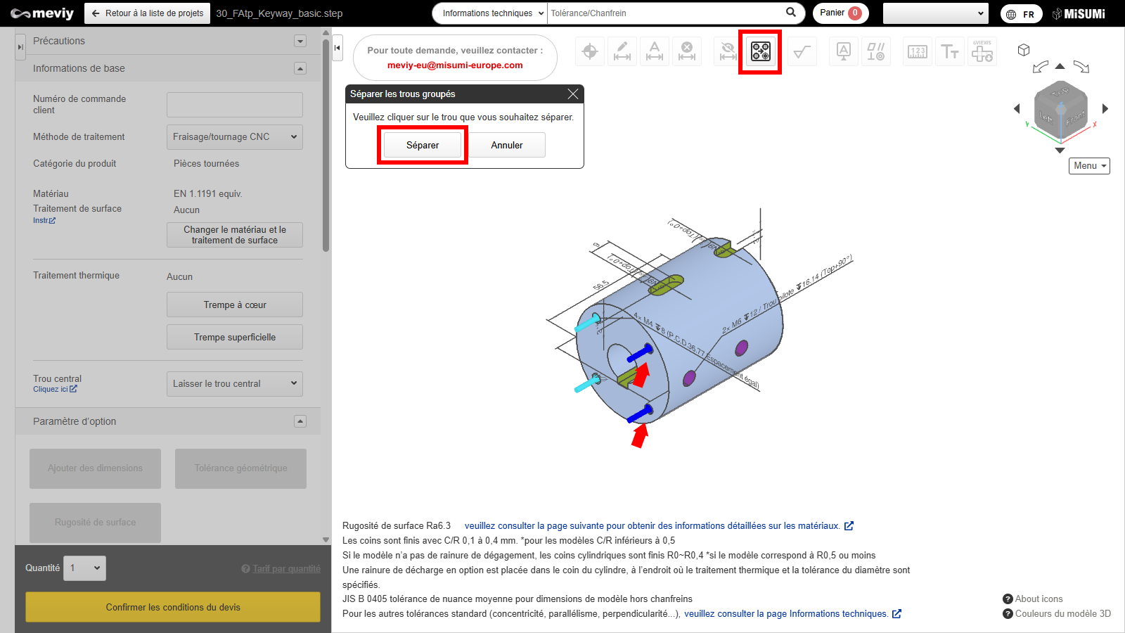 Après la division, vous pouvez mettre à jour les différents types de trous et les tolérances de diamètre des trous.