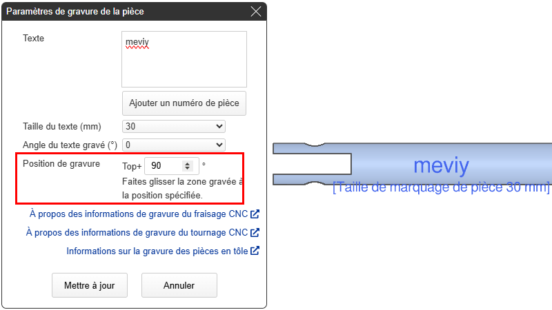 ②Depuis la position de gravure, vous pouvez modifier l’emplacement de la gravure sur la surface cylindrique.