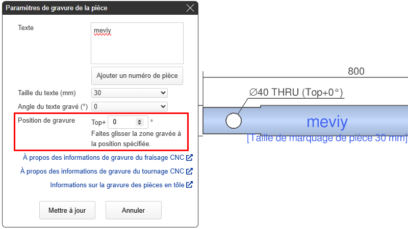 ②Depuis la position de gravure, vous pouvez modifier l’emplacement de la gravure sur la surface cylindrique.