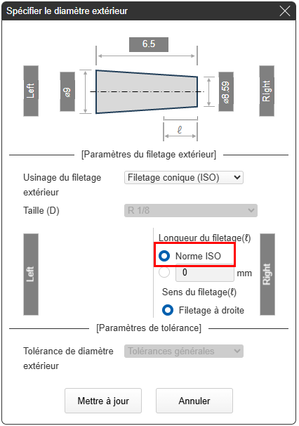 ◯ | Filetage extérieur et Filetage intérieur sont disponibles pour devis automatique |