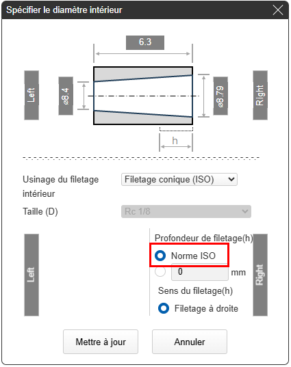 - La fonction de reconnaissance automatique du type de trou n’est pas prise en charge pour le diamètre intérieur lors de l’usinage d’objets ronds. Configurez les paramètres dans la Visionneuse 3D.