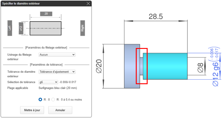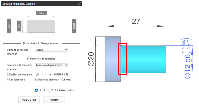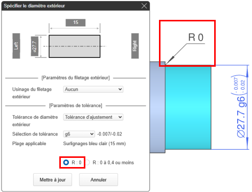 - → Sélectionnez « Rayon du coin entre R0 et R0,4 ».