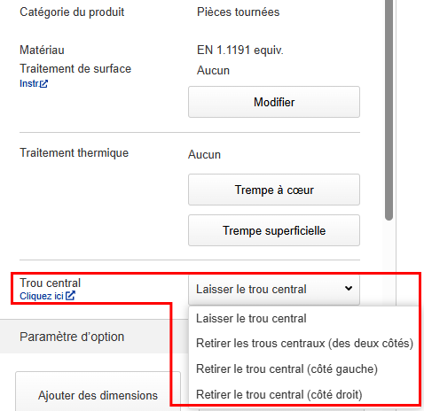 Le trou central réalisé dans la face frontale sert à maintenir la pièce à usiner en place et à empêcher toute déviation du noyau lors de la rotation du produit.