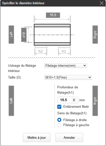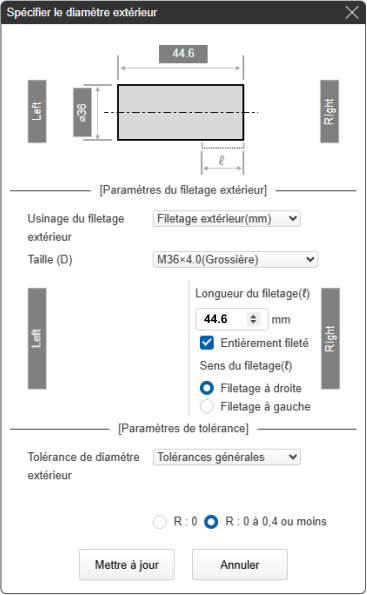 - La forme du filetage ne peut pas être identifiée. Définir les filetages extérieur et intérieur.