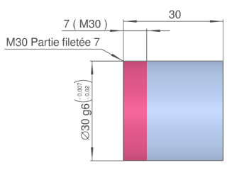 Valeur définie | ø30 g6 (-0,007/-0,02) | ø30 g6 (-0,007/-0,02) | ø30 g6 (-0,007/-0,02) | ø30 g6 (-0,007/-0,02) | |