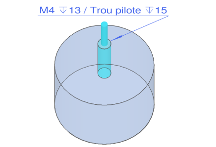Affichage du visualiseur 3D | ø4 ↧15 | ø4H7(+0,012/0) ↧13/Avant trou ↧15 | ø4 Traversant | ø4H7(+0,012/0) ↧15 Traversant |