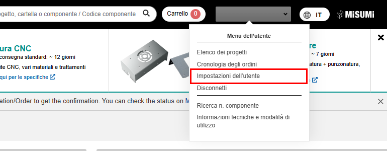 Passa con il mouse sul tuo nome utente e clicca su [Impostazioni utente] dal menu Utente.