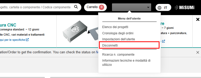 Se si è già effettuato l’accesso al negozio online ufficiale Misumi (E-Catalog), l’accesso alla piattaforma meviy avverrà automaticamente.
