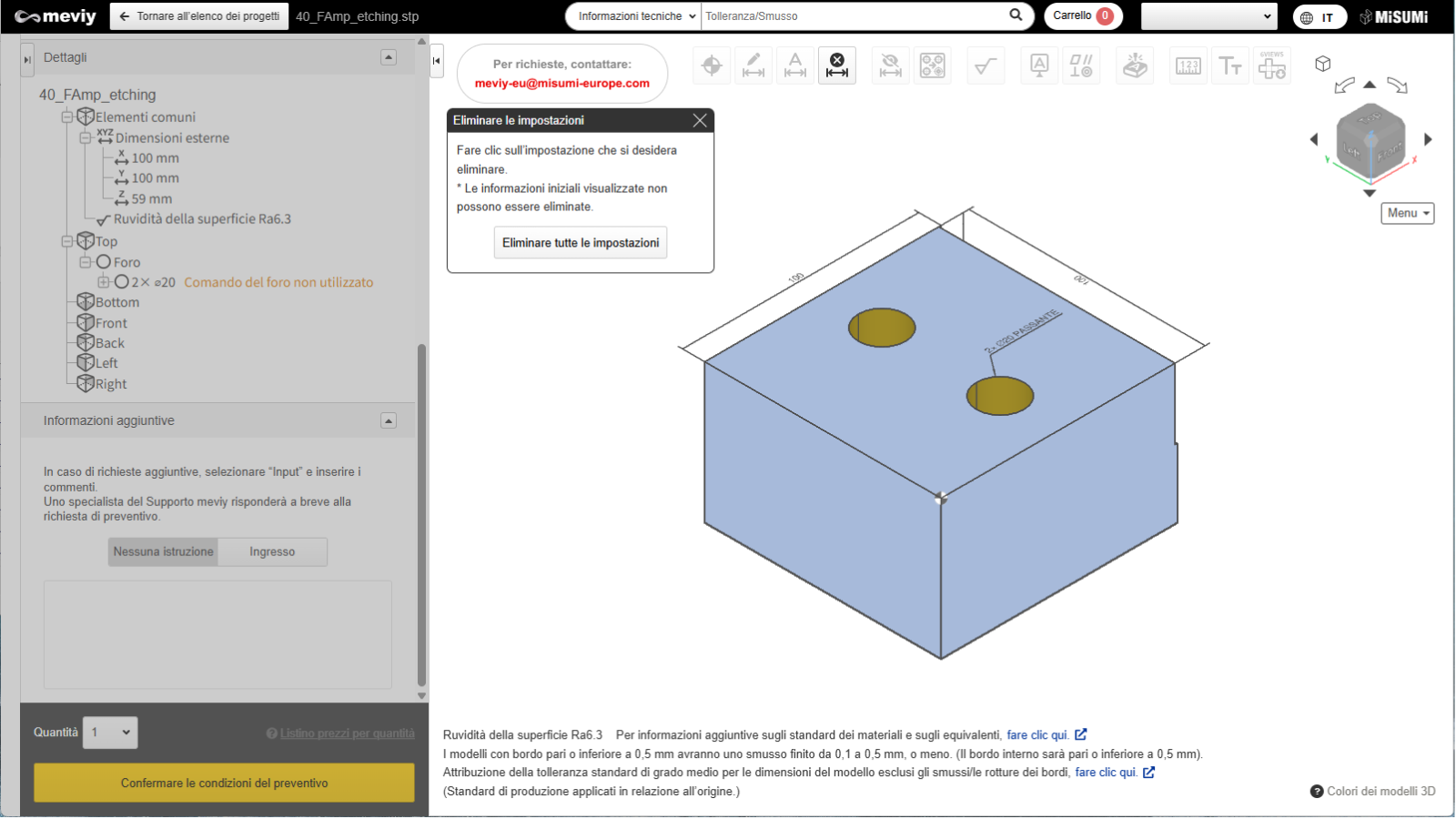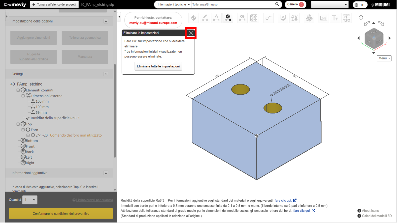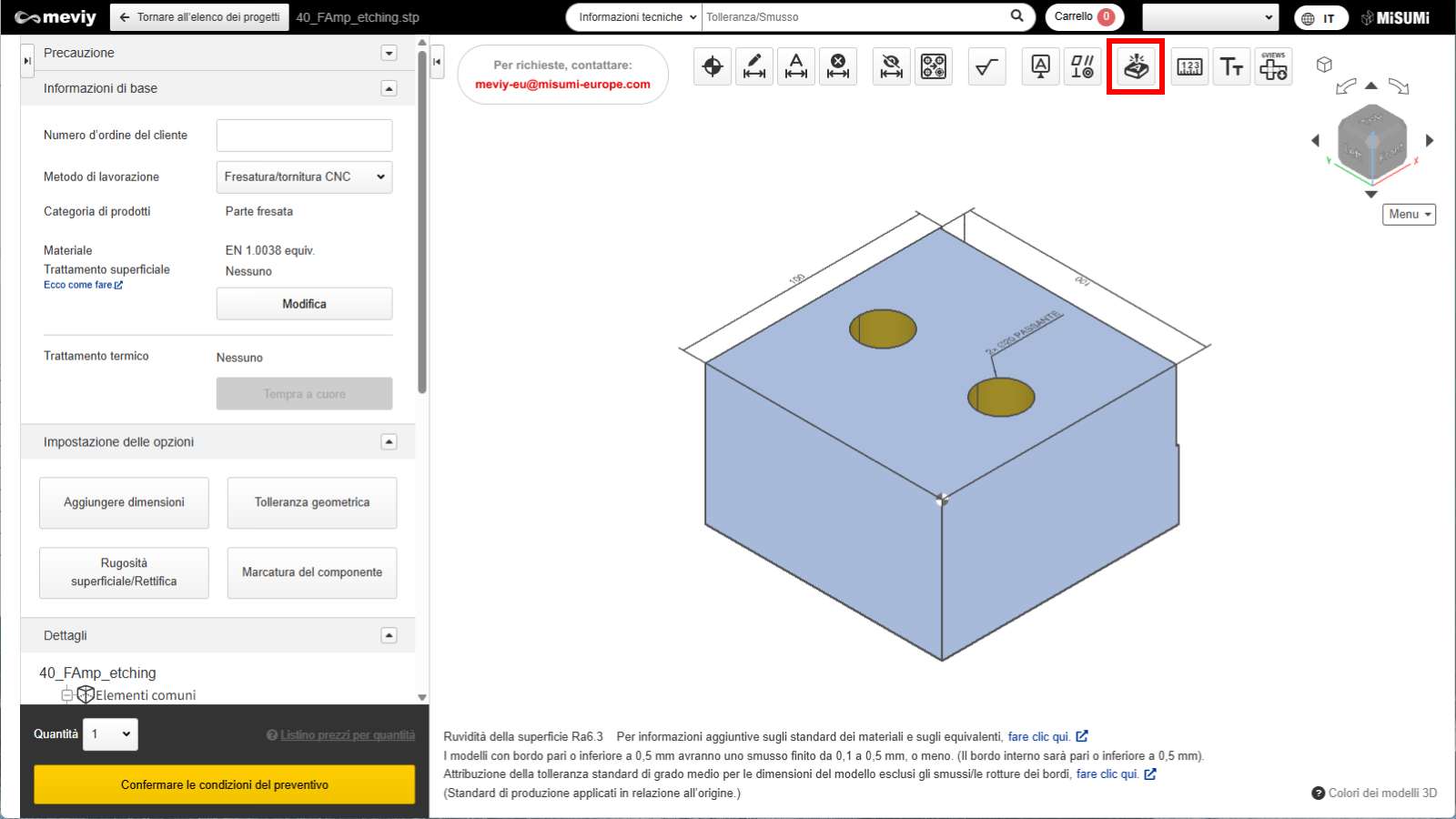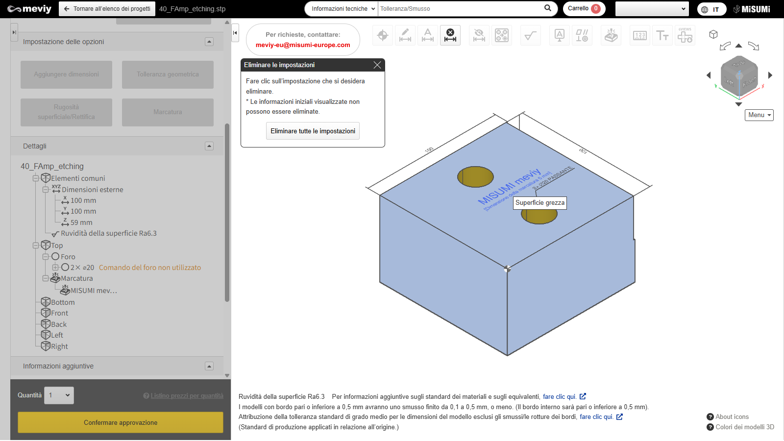 - Per specificare l’incisione del codice componente, fare clic su “Aggiungi codice componente”. Verrà emesso un codice componente temporaneo (MVBLK-XXX-XXX-XXX-XXX) che verrà visualizzato nel Visualizzatore 3D.