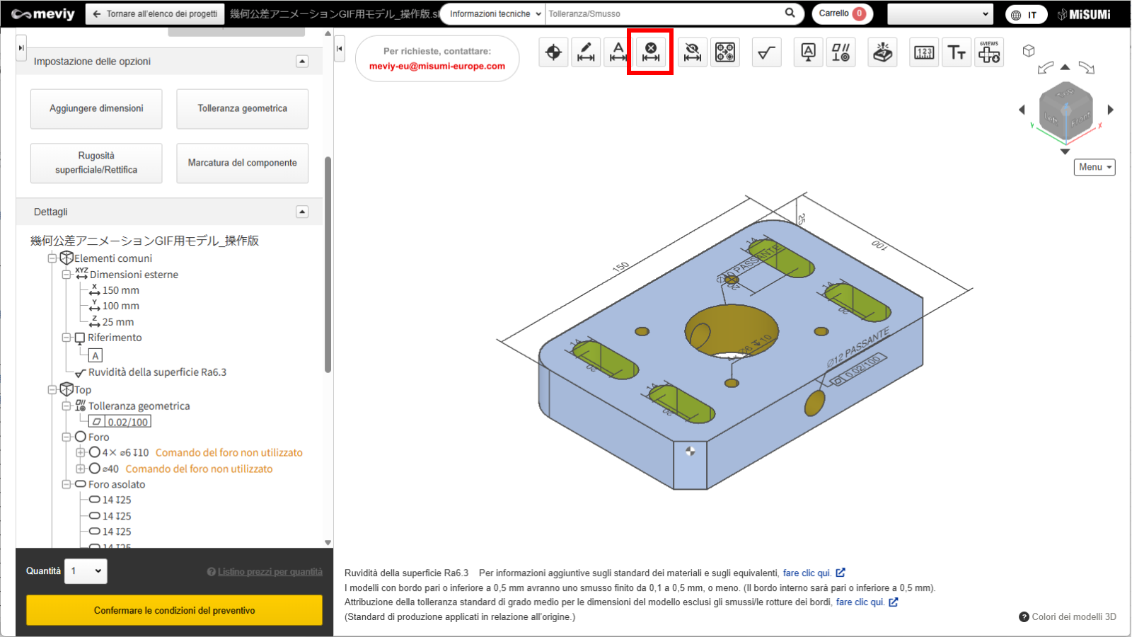 È possibile impostare su meviy il riferimento e le tolleranze geometriche.